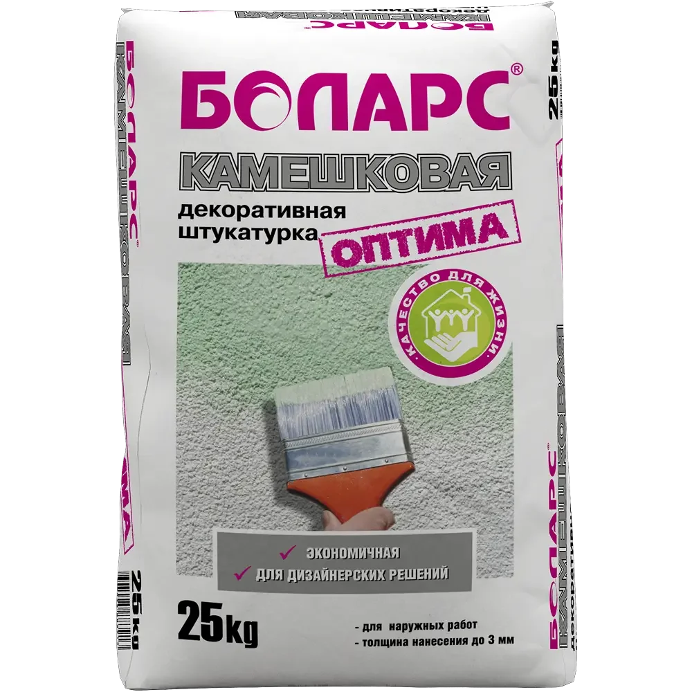 Купить БОЛАРС Декоративная штукатурка КАМЕШКОВАЯ ОПТИМА (1,5мм/2,5мм) 25 кг по доступной цене в Москве