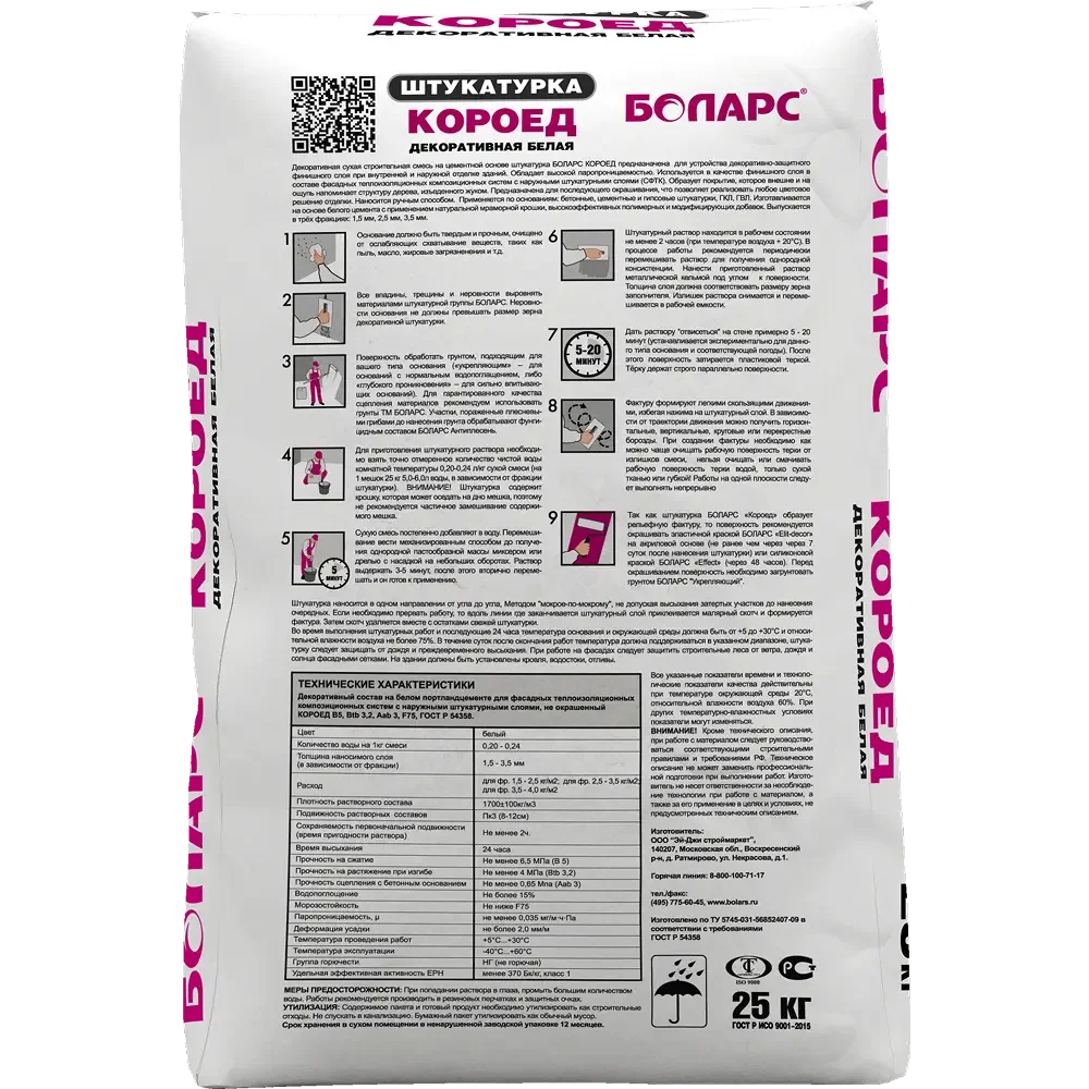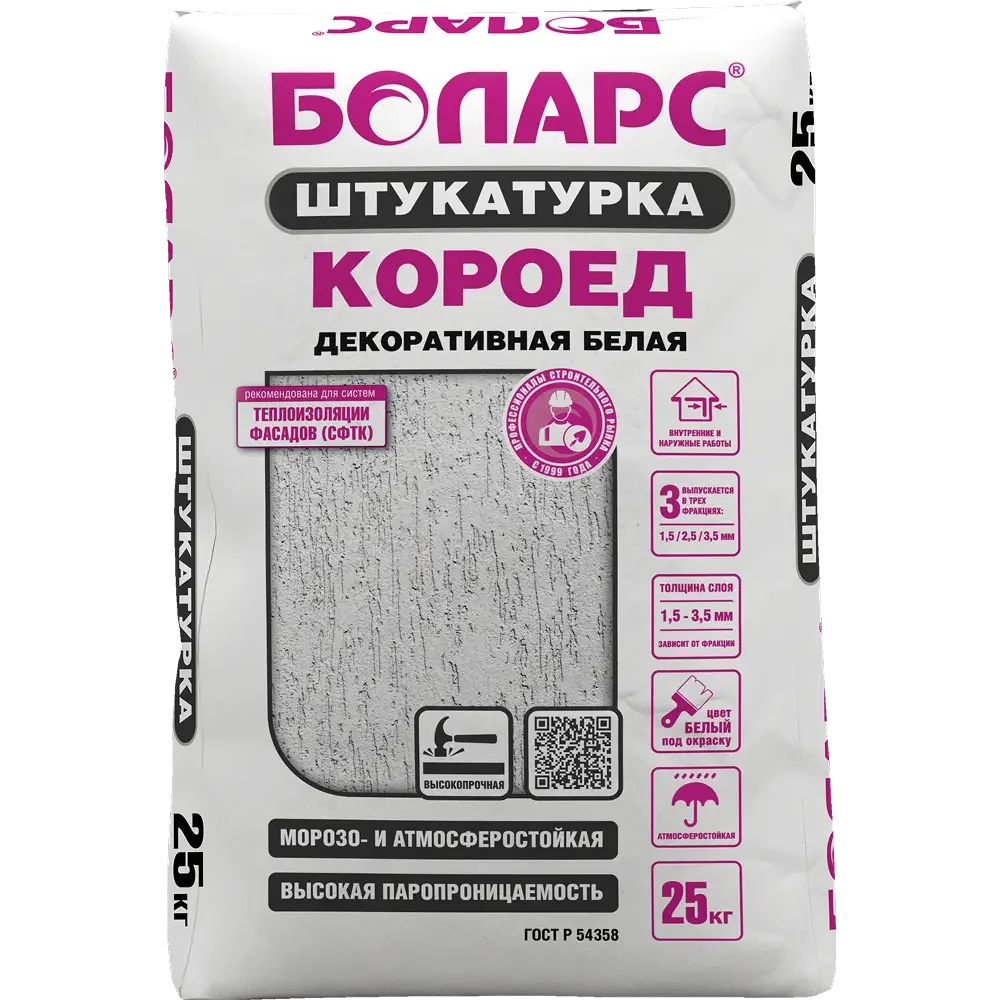 Купить БОЛАРС Декоративная штукатурка КОРОЕД (1,5мм/2,5мм) 25 кг по доступной цене в Москве