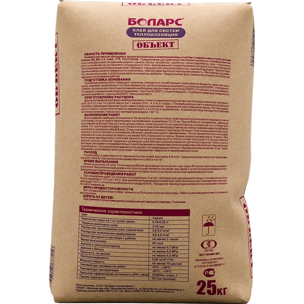 Купить БОЛАРС ОБЪЕКТ клей для ТЕПЛОИЗОЛЯЦИИ МОРОЗОСТОЙКИЙ (ДО по доступной цене в Москве