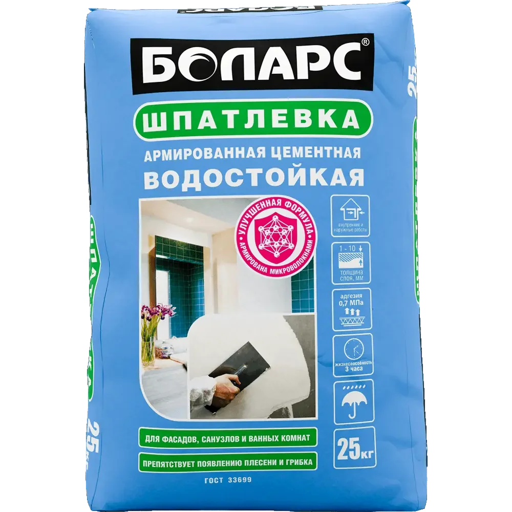 Купить БОЛАРС Шпатлевка цементная ВОДОСТОЙКАЯ 25 кг по доступной цене в Москве