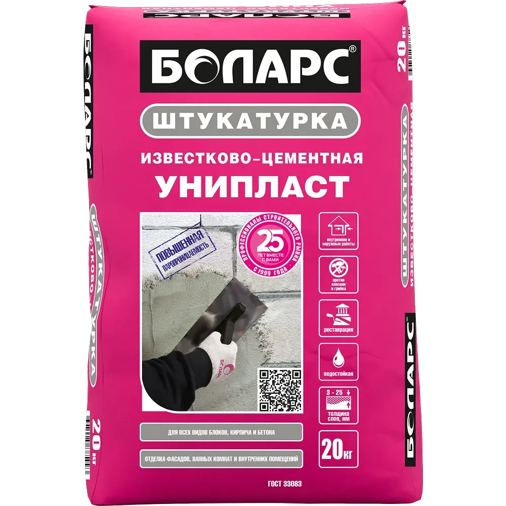 Купить БОЛАРС Штукатурка для блоков УНИПЛАСТ 20 кг по доступной цене в Москве