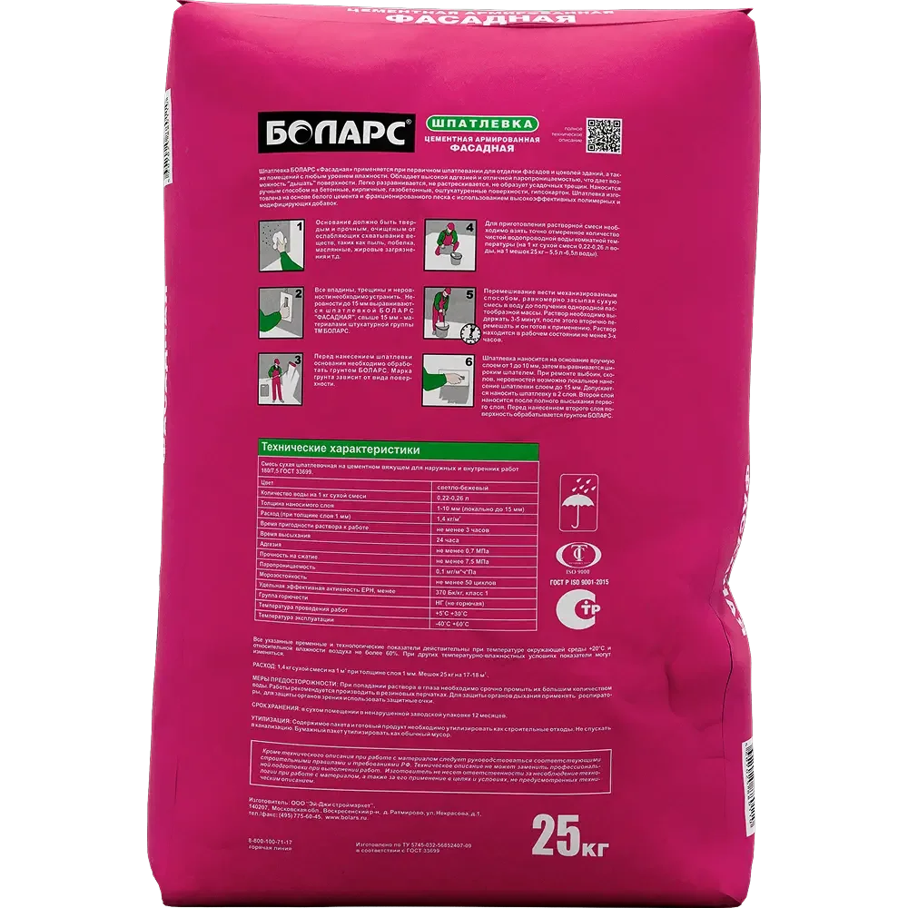 Купить БОЛАРС Штукатурка цементная ФАСАДНАЯ 25 кг по доступной цене в Москве