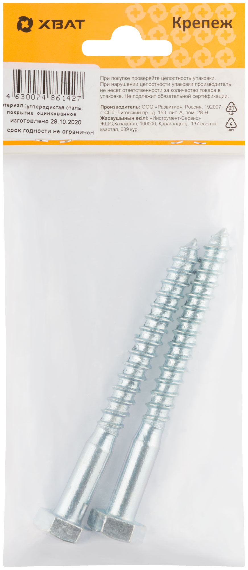Шестигранная головка D=10/12/14/19. Редкий шаг резьбы под углом 600, острый наконечник, изготовлен из стали. Оцинкованный. Применяется для крепления лаг, реек, сборки деревянных конструкций, сантехнических креплений и других целей, когда требуется мощное закрепление. Используется также совместно с пластмассовыми и металлическими универсальными дюбелями.