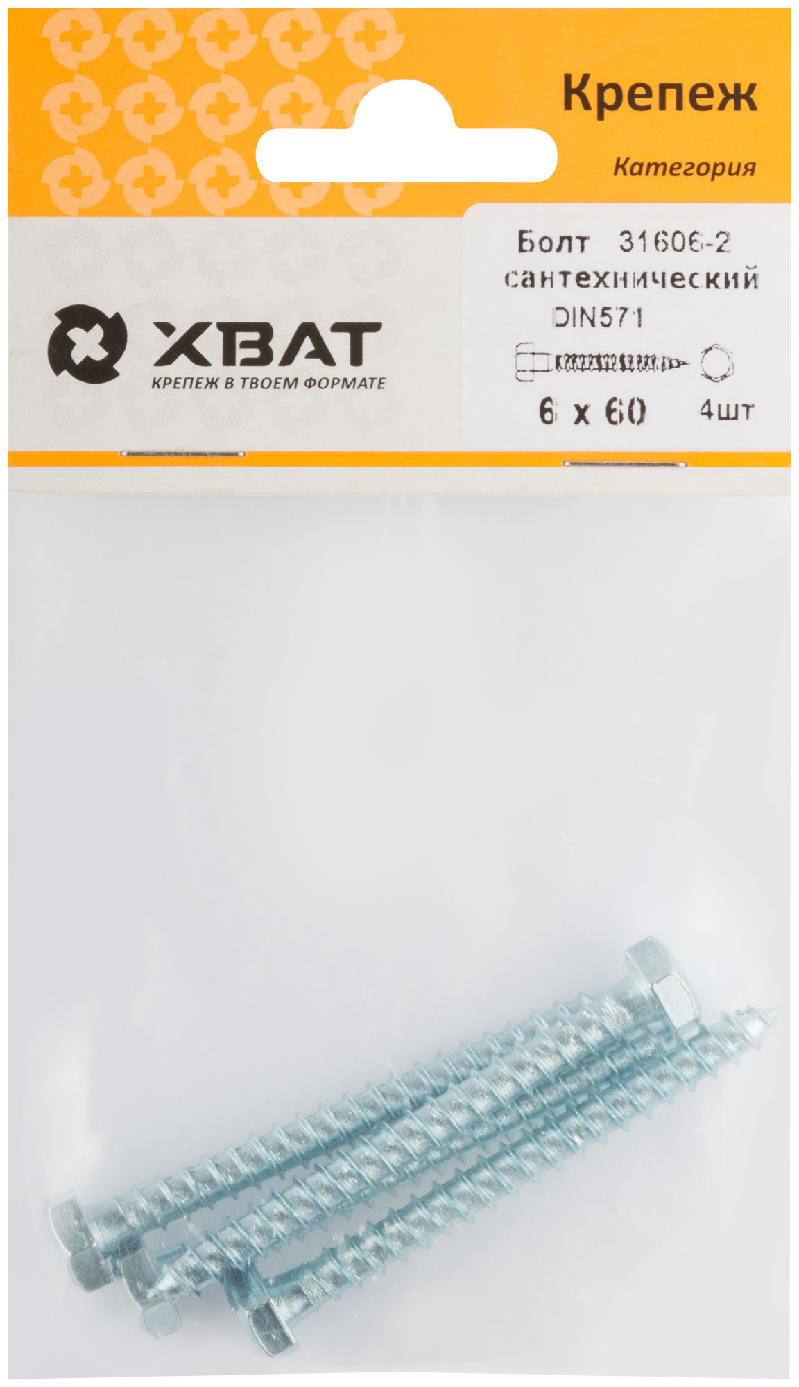 Купить Болт сантехнический DIN 571 6/60 ( фасовка 4 10 ) по доступной цене в Москве