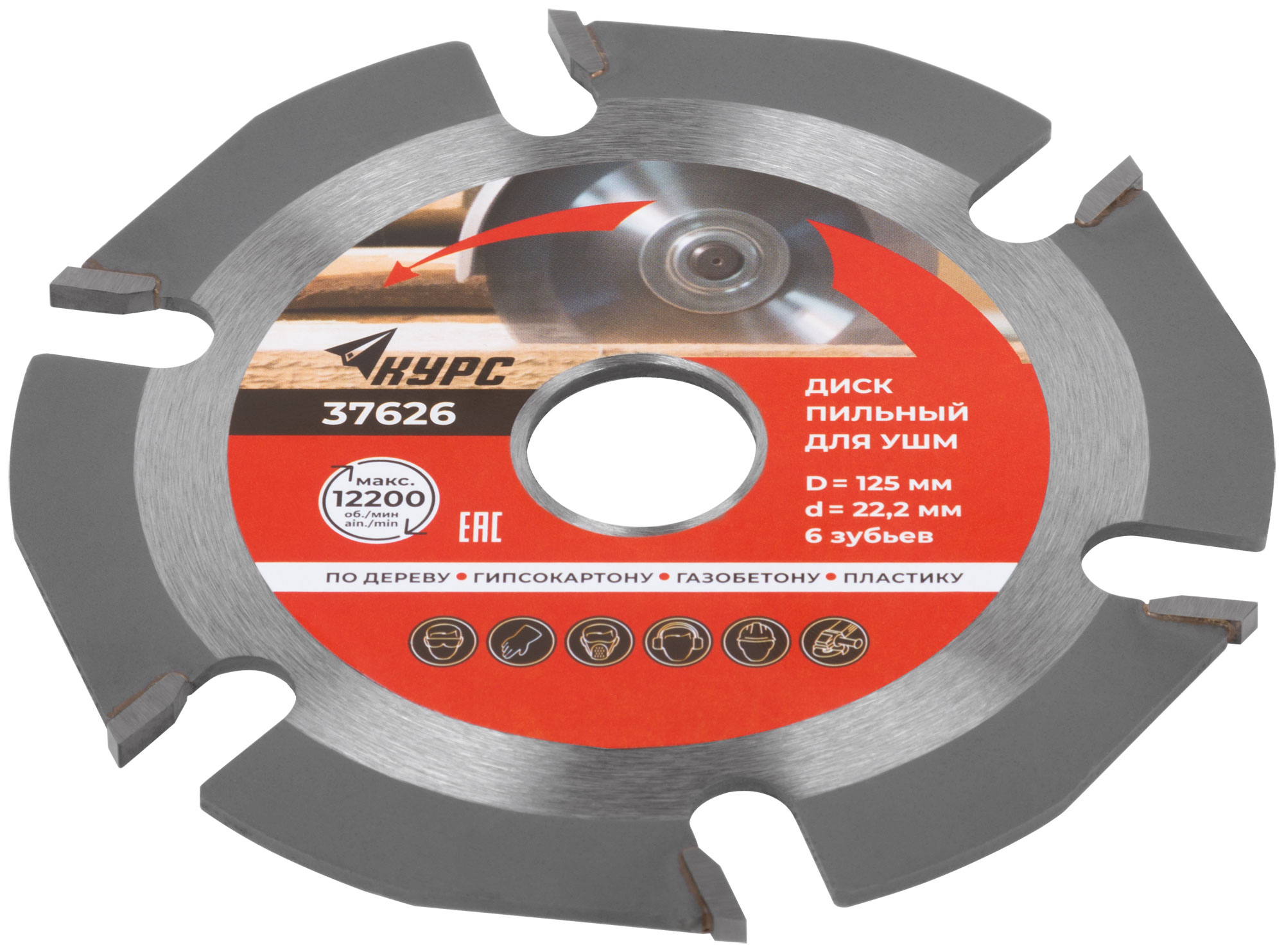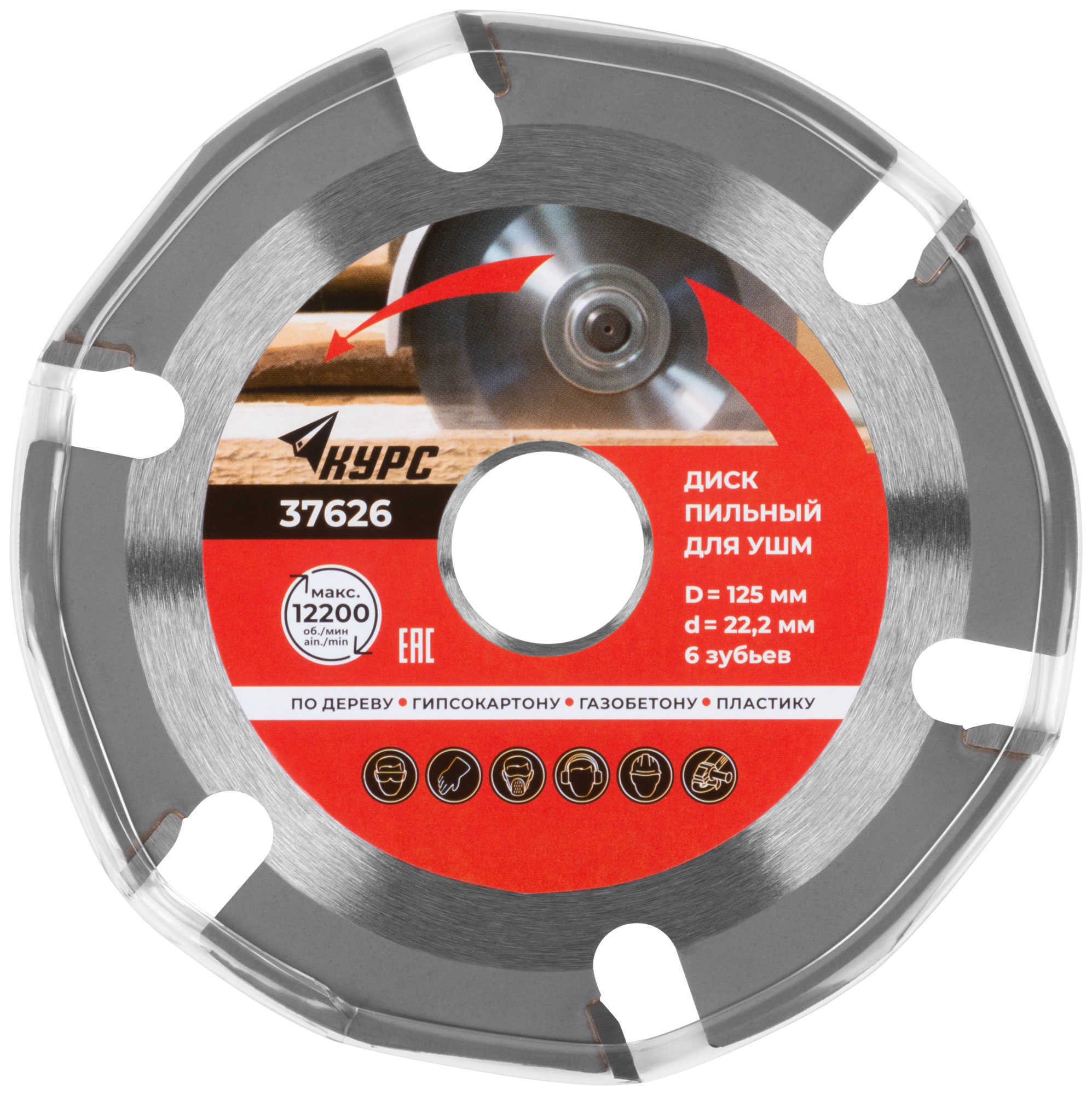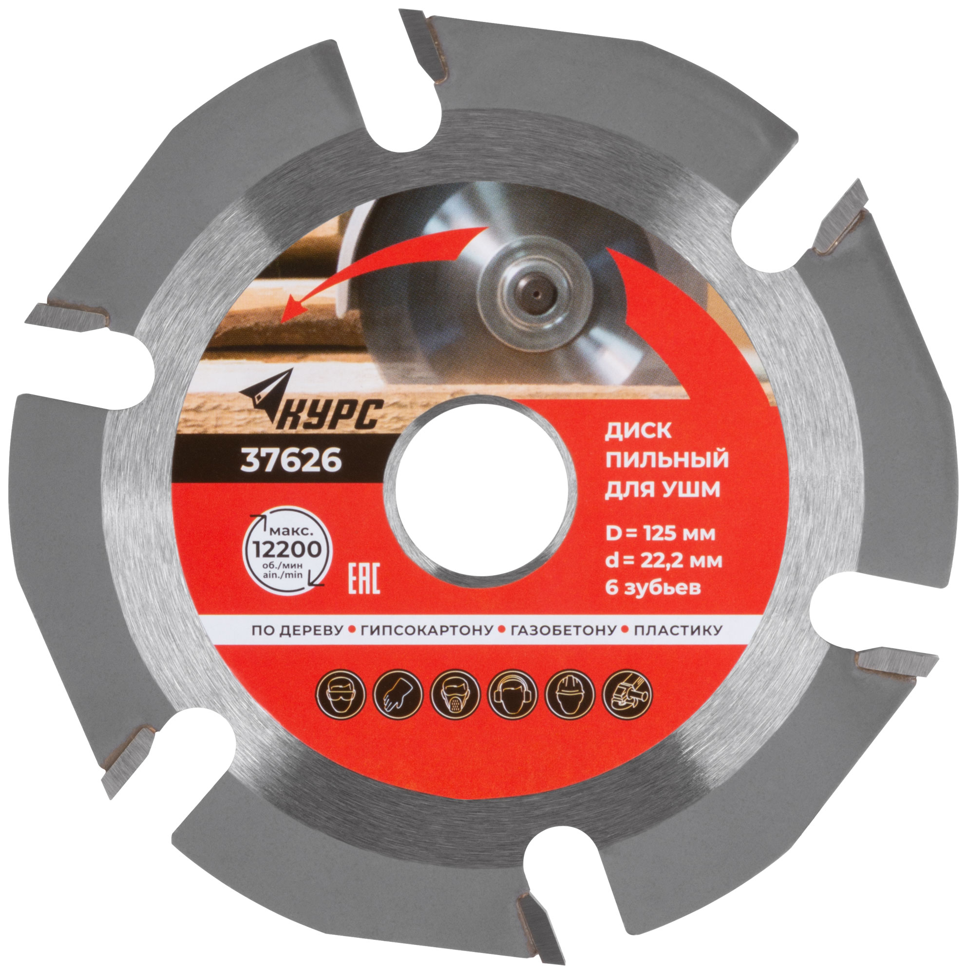 Купить Диск пильный по дереву, посадочный диаметр 22,2 мм, 6 зубьев с карбидными вставками, 125 мм по доступной цене в Москве