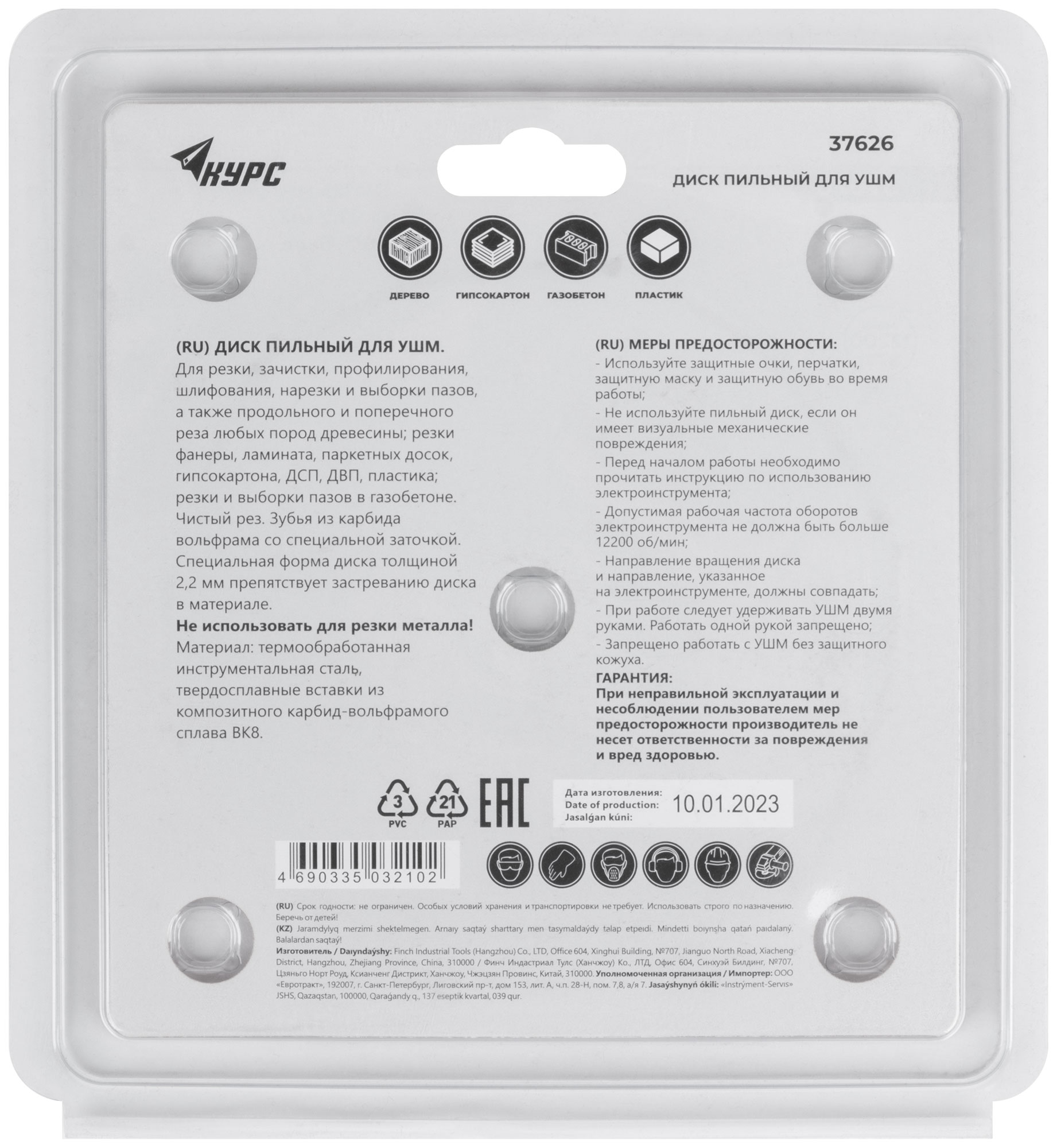 По дереву, газобетону, гипсокартону, пластмассе. Для углошлифовальных машин. Посадочный диаметр 22,2 мм. 6 зубьев с карбидными вставками скошенного типа. Чистый рез. Специальная форма диска толщиной 2,2 мм препятствует застреванию в материале. Материал: инструментальная сталь, зубья с карбидными вставками. 9овка: картонный конверт.