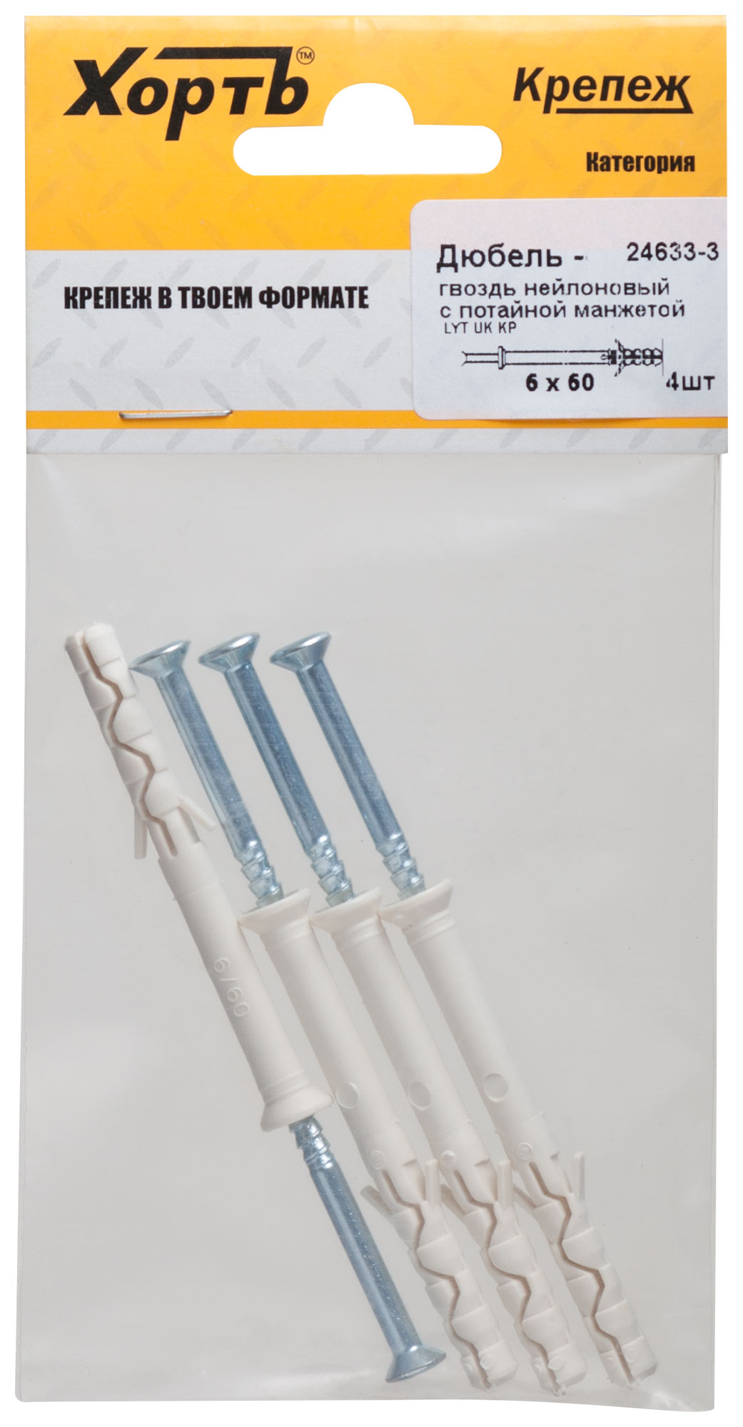 Купить Дюбель-гвоздь нейлоновый с потайной манжетой LYT 6 х 60 UK KP (фасовка 4 10.) по доступной цене в Москве