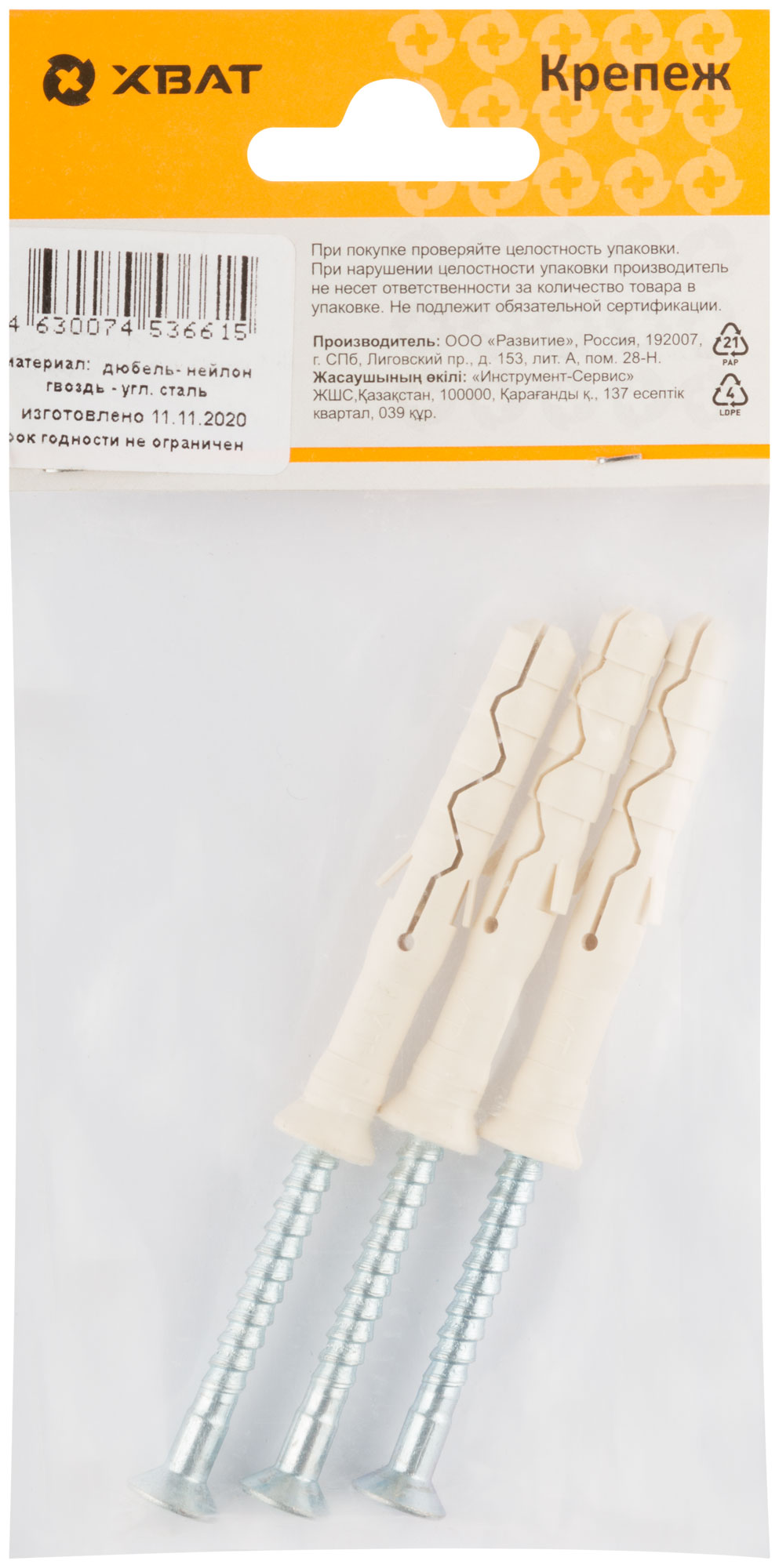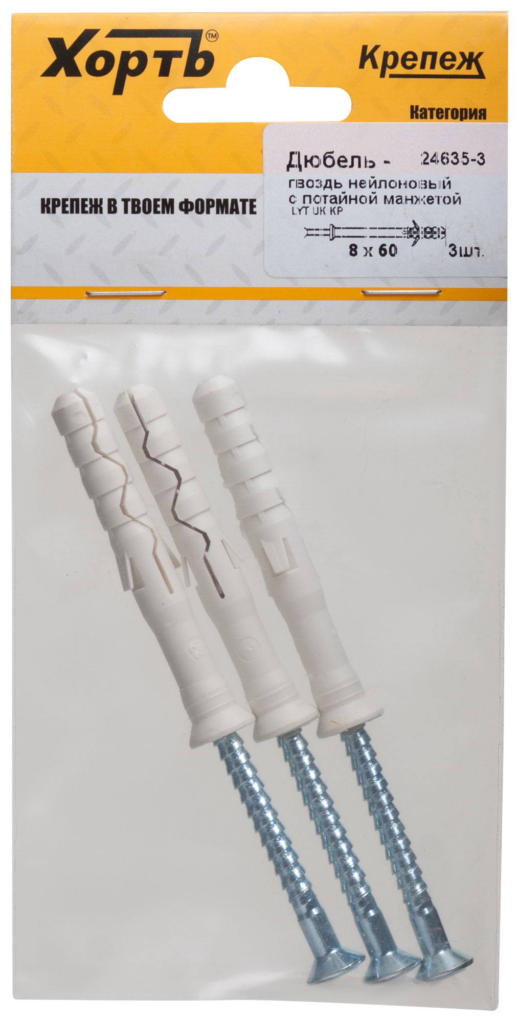 Купить Дюбель-гвоздь нейлоновый с потайной манжетой LYT 8 х 60 UK KP (фасовка 3 10.) по доступной цене в Москве