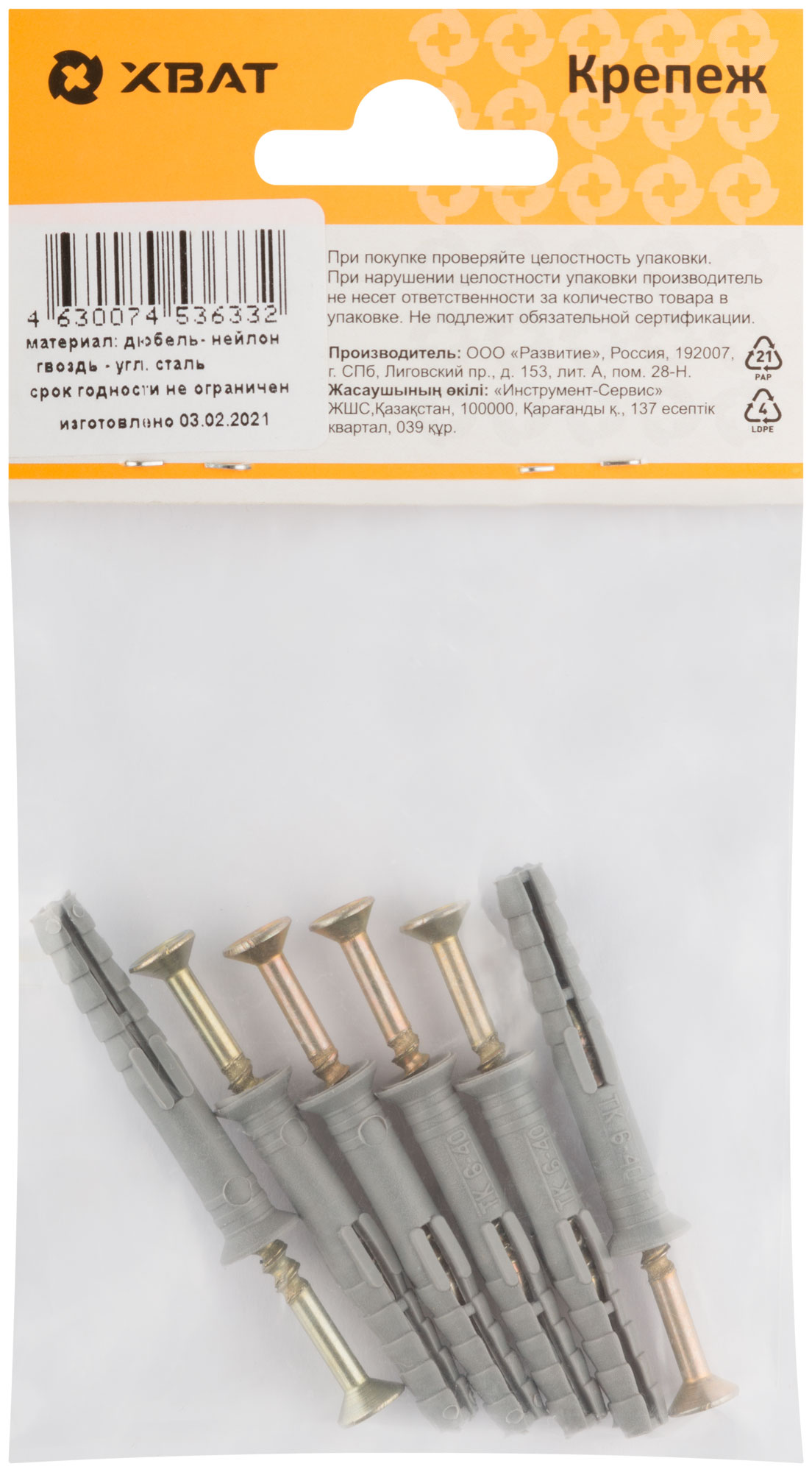 Купить Дюбель-гвоздь полипропиленовый 6 х 40 ( фасовка 6 10.) по доступной цене в Москве