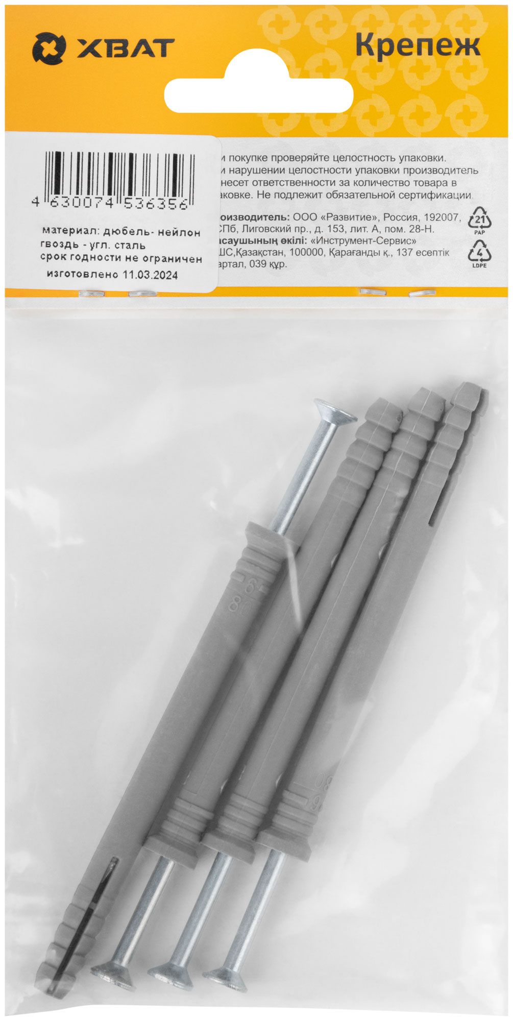 Купить Дюбель-гвоздь полипропиленовый 6 х 80 ( фасовка 4 10.) по доступной цене в Москве