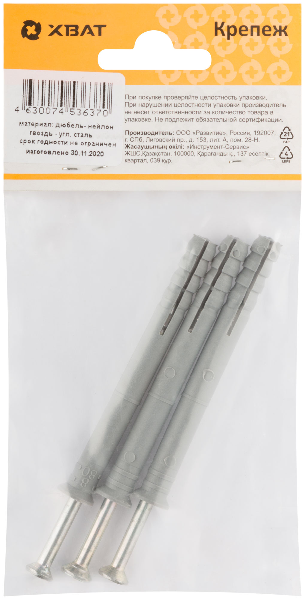 Купить Дюбель-гвоздь полипропиленовый 8 х 80 ( фасовка 3 10.) по доступной цене в Москве