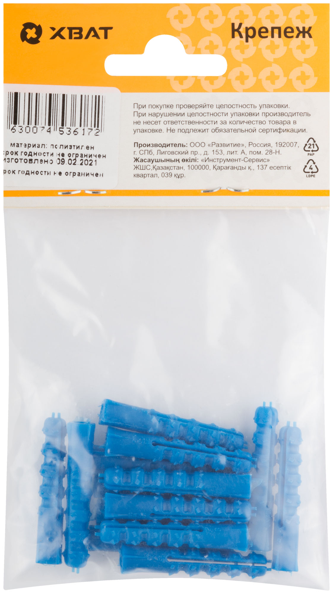 Купить Дюбель распорный с шипами тип К синий 6 х 35 (фасовка 14 10.) по доступной цене в Москве