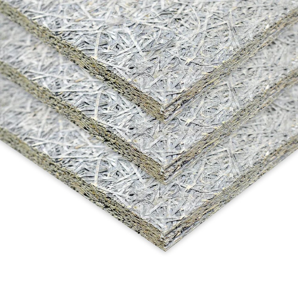 Фибролитовая плита Green Board GB1050-18 высокой плотности – многофункциональный, современный и экологически безопасный строительный материал. Композит состоит из древесной шерсти (60%) и портландцемента (39,5%) с добавлением натурального минерализатора (0,5%) – раствора силиката натрия (канцелярский клей) низкой концентрации для нейтрализации сахара в древесине. Силикат натрия является хорошим антисептиком. В производстве цементно-стружечных изделий он повышает адгезию древесины с цементом и защищает продукт от гниения, грибка и насекомых.