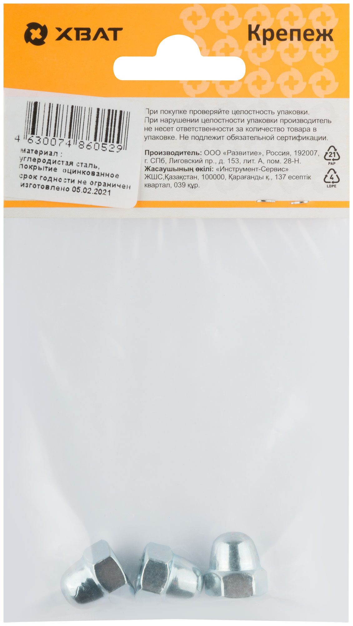 Оцинкованная. Колпачок гайки защищает резьбу от механических повреждений и коррозии, предохраняет от получения травм, а также улучшает внешний вид соединения.