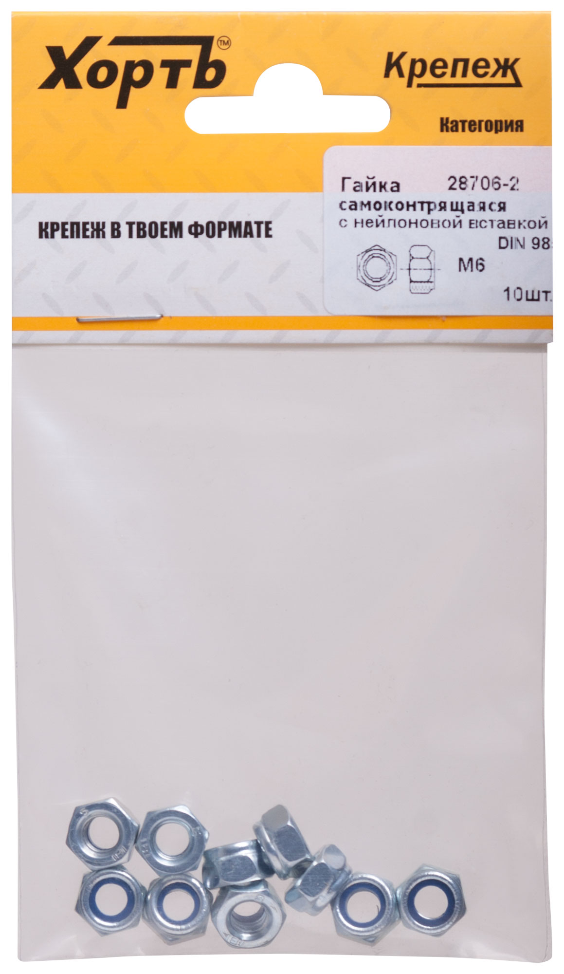 Купить Гайка самоконтрящаяся с нейлоновой вставкой М6 ( фасовка 10 10 ) DIN 985 по доступной цене в Москве