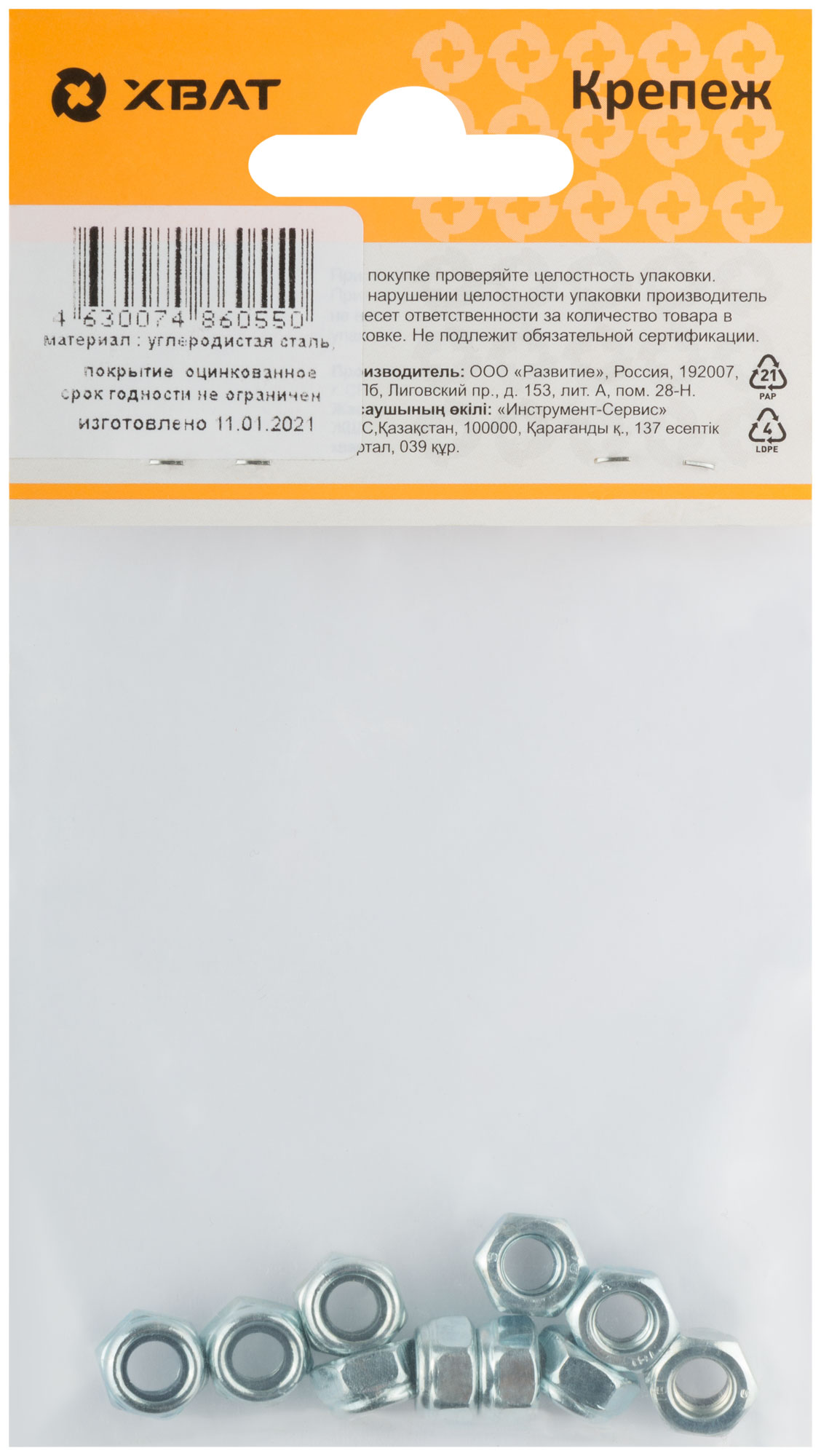 Оцинкованная. С нейлоновой вставкой. Нейлоновое кольцо предотвращает самопроизвольное откручивание гайки, а так же обеспечивает герметичность резьбы. Позволяет быстро и качественно произвести монтаж без использования стопорных шайб или гроверов.