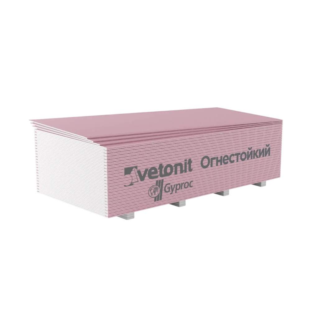 Vetonit Gyproc Огнестойкий 3000х1200х12,5 мм — огнестойкий гипсокартон для перегородок, потолков и облицовок с требованиями по пожарной безопасности. Подходит для внутренних работ и последующей отделки. Источник характеристик линейки: https://www.gyproc.ru/produkciya/gipsovye-stroitelnye-plity/gsp-vetonit-gyproc-ognestoykiy-2500kh1200kh125-mm