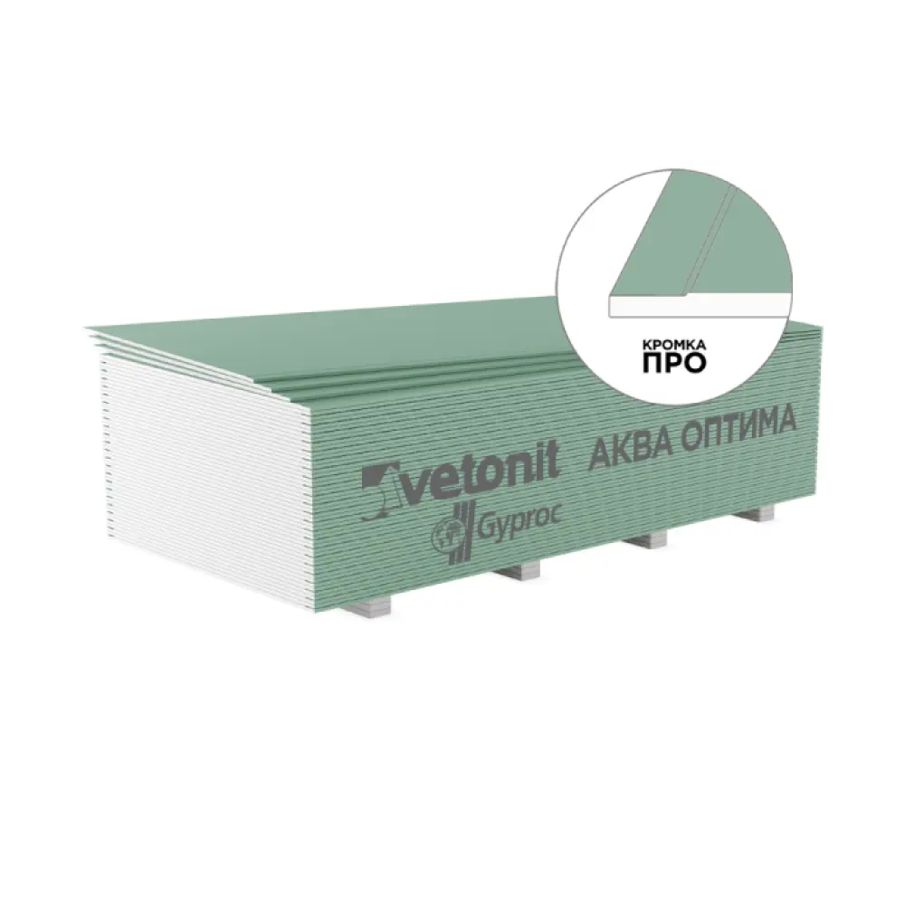 Гипсокартонный лист Vetonit (Гипрок) Аква Оптима, Влагостойкий 2500х1200, 12,5 мм