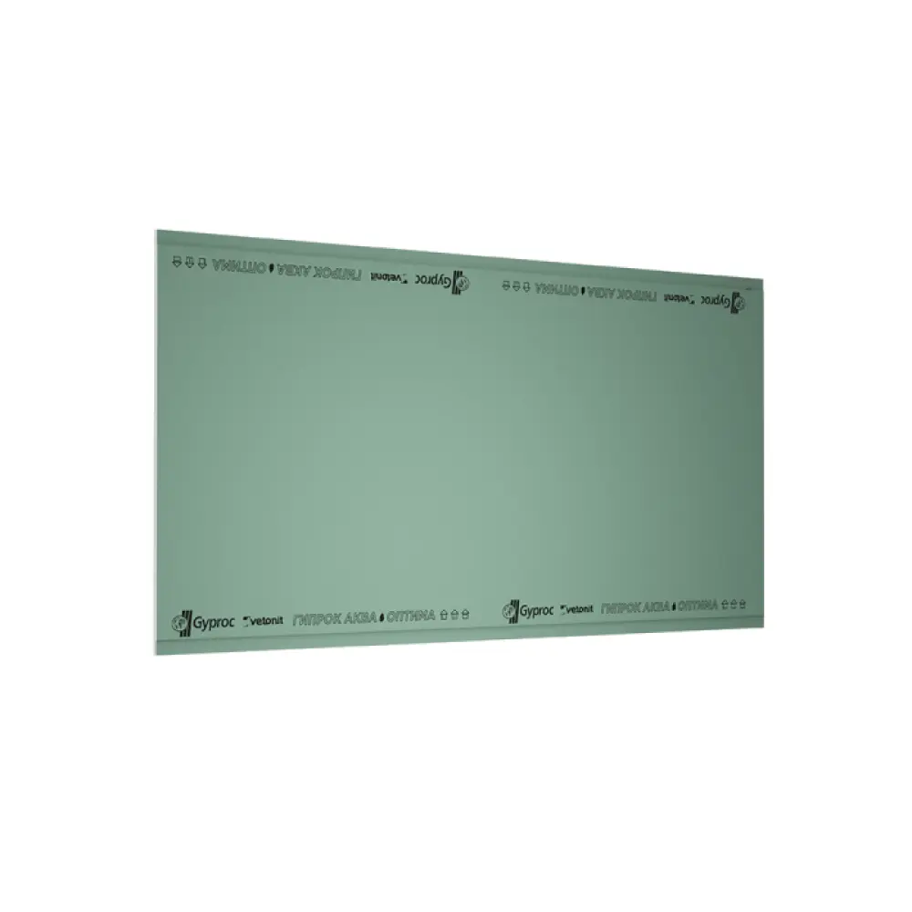Влагостойкая гипсовая строительная плита Gyproc Аква Оптима (ГСП-H3) предназначена для перегородок, облицовок и потолков в санузлах, ванных и кухнях. Плита состоит из гипсового сердечника, облицованного картоном зеленого цвета. ГСП в составе подвесного потолка Гипрок Акустик обеспечивает базовую защиту от шума соседей сверху. Экологическая безопасность материалов Гипрок подтверждена экомаркировкой EcoMaterial, степень "Absolute".