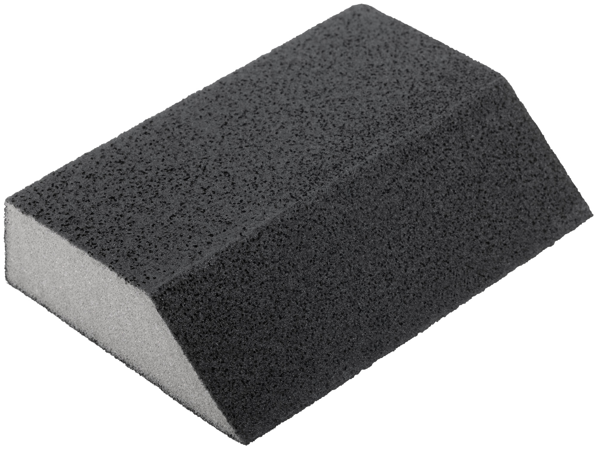 100 х 70 х 25 мм. Угловая. Водостойкая. Средняя жесткость. Для доводочных работ. Для обработки металла, дерева, фанеры, гипсокартона, ДСП. Материал: алюминий-оксидный абразивный слой. 9овка: п/э пакет с картонным подвесом.