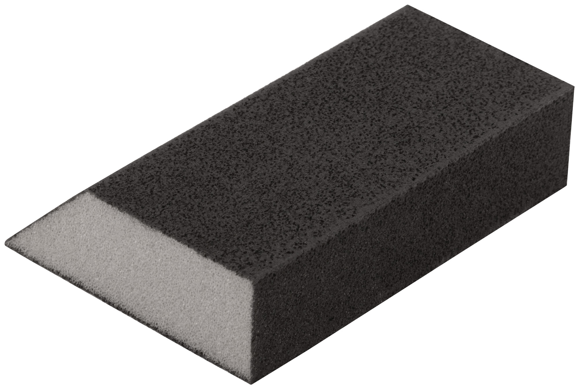 100 х 70 х 25 мм. Угловая. Водостойкая. Средняя жесткость. Для доводочных работ. Для обработки металла, дерева, фанеры, гипсокартона, ДСП. Материал: алюминий-оксидный абразивный слой. 9овка: п/э пакет с картонным подвесом.