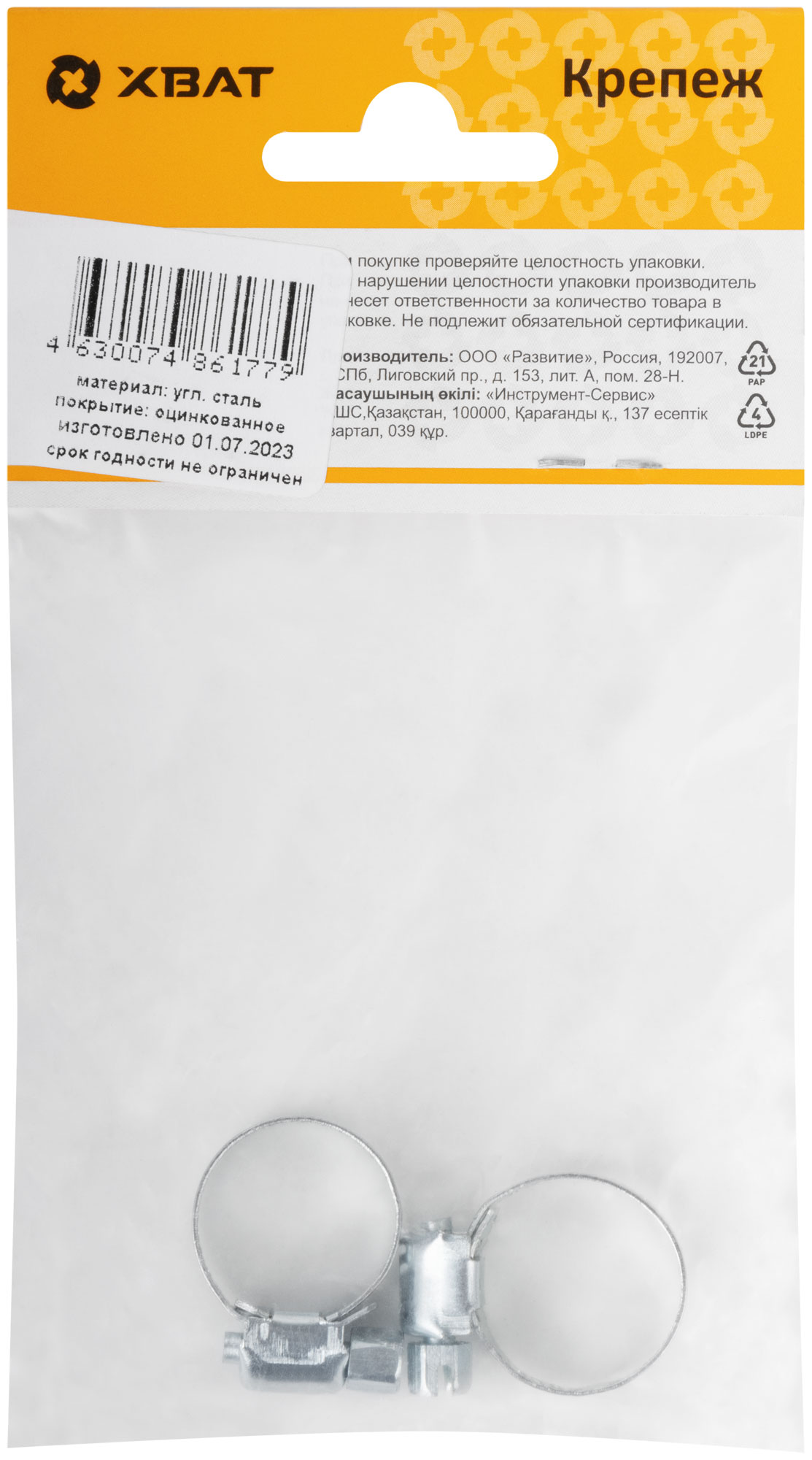 Купить Хомут обжимной просечной (оцинкованная сталь) шир.8 мм. 3/4" (13-19 мм) (фасовка 2 10.) по доступной цене в Москве