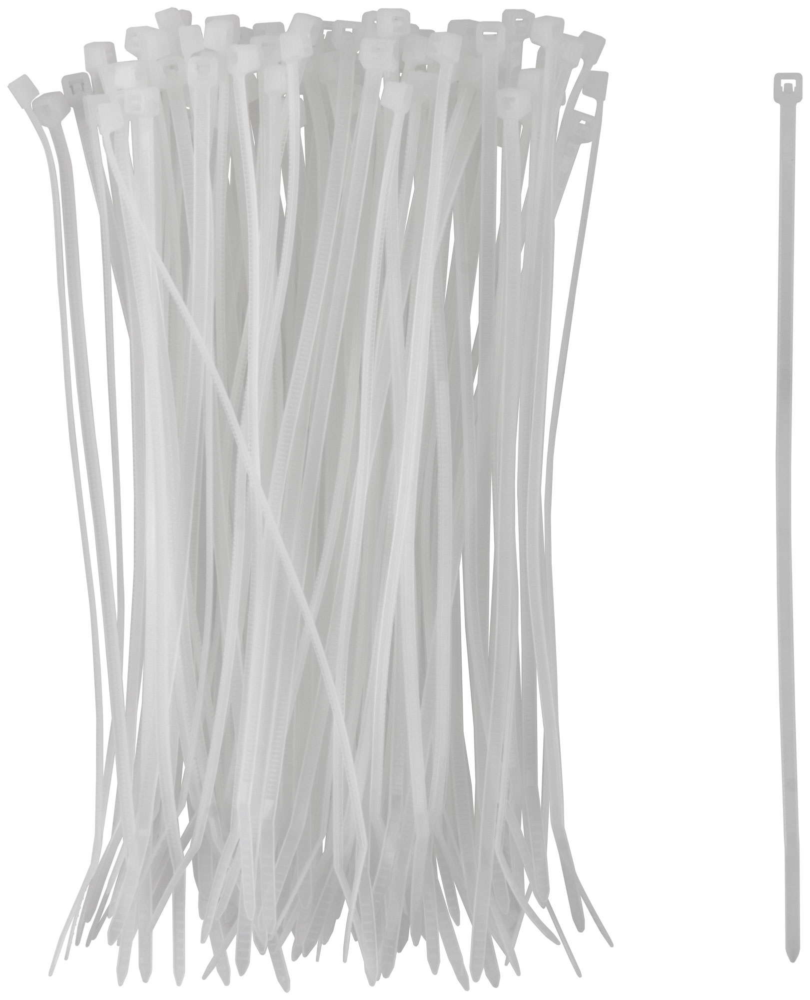 Белые, для проводов. Для связывания кабелей во время электромонтажных работ. Материал: нейлон. 9овка: п/э пакет с подвесом.