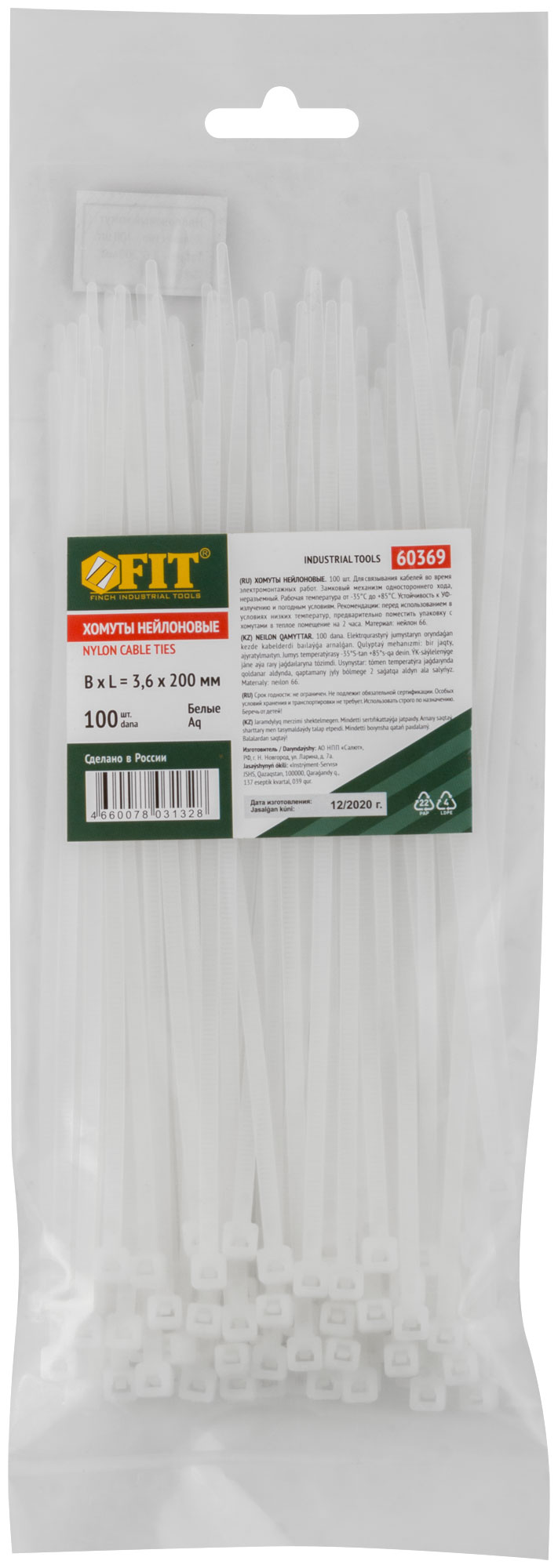 Белые, для проводов. Для связывания кабелей во время электромонтажных работ. Материал: нейлон. 9овка: п/э пакет с подвесом.