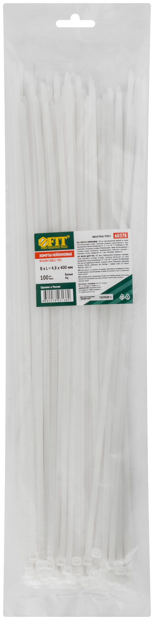 Купить Хомуты нейлоновые для проводов, белые 100 10., 4,8х400 мм по доступной цене в Москве