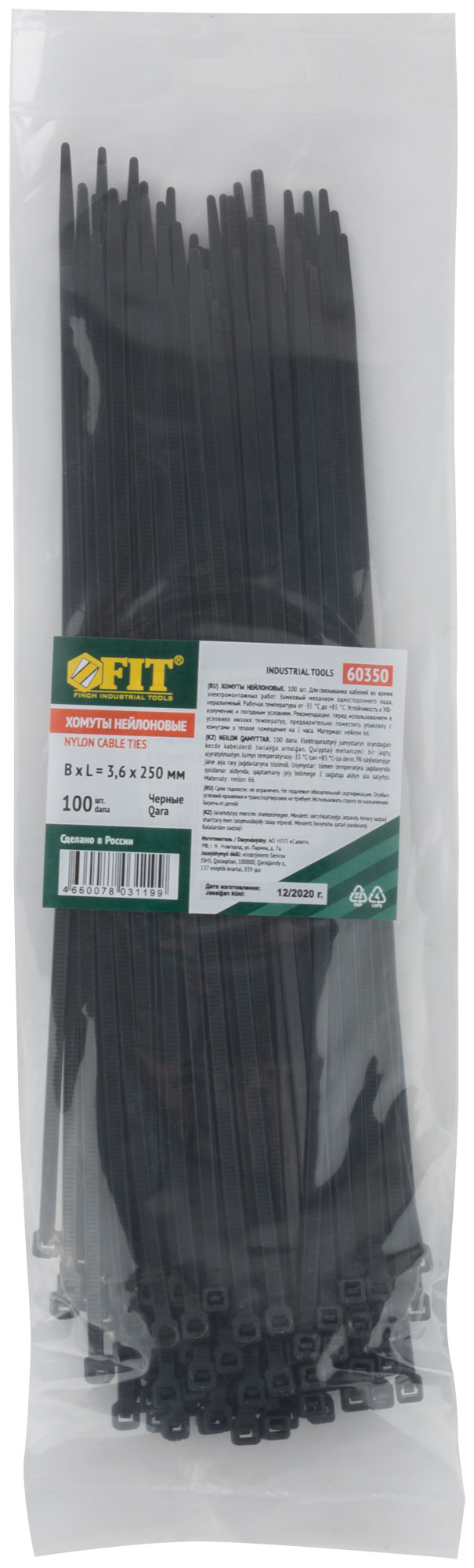 Купить Хомуты нейлоновые для проводов, черные 100 10., 3,6х250 мм по доступной цене в Москве