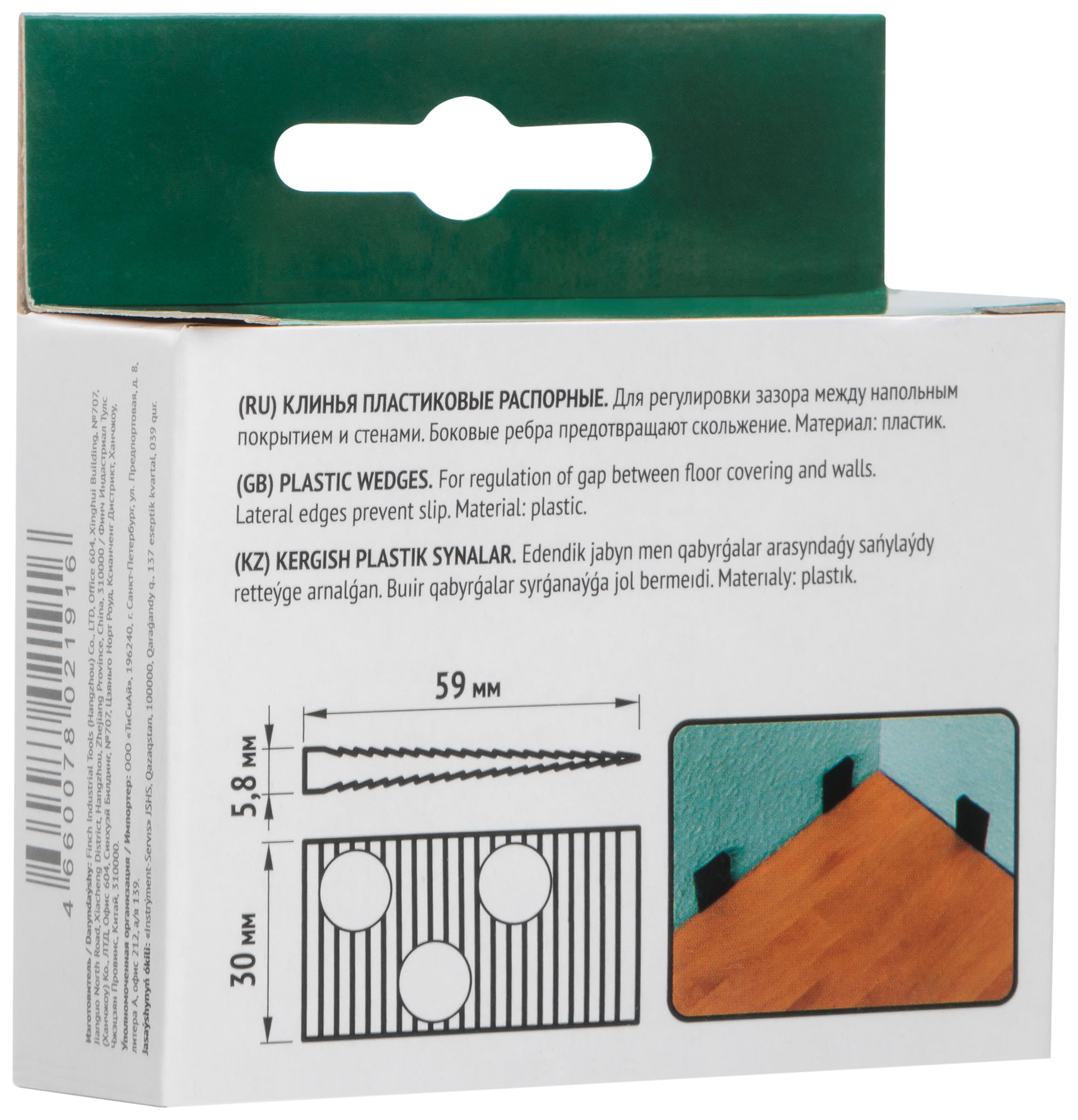 Предназначены для корректировки укладки напольного покрытия. Позволяет регулировать зазор между напольным покрытием и стенами. Материал : пластик. 9овка : картонная коробка,