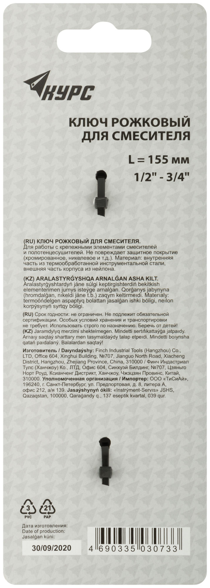 Купить Ключ рожковый для смесителя, нейлоновая оболочка, 1/2"x3/4", 155 мм по доступной цене в Москве