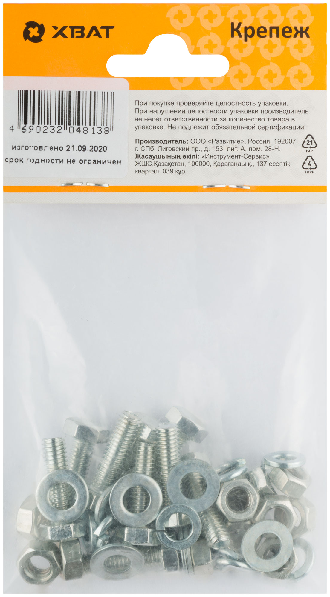 В комплекте Болт DIN933, гайка DIN934, шайба DIN125, шайба пруж. DIN127