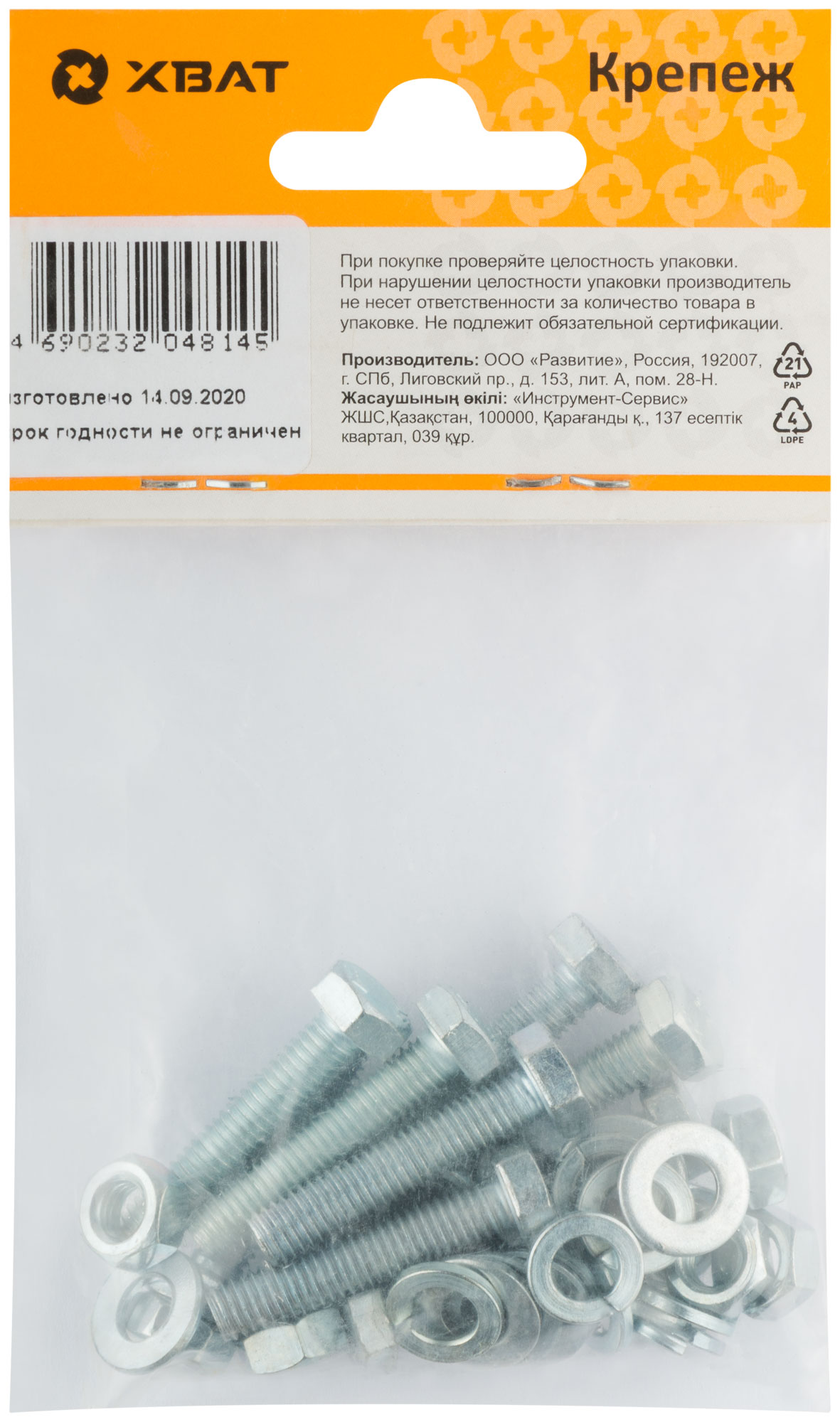 В комплекте Болт DIN933, гайка DIN934, шайба DIN125, шайба пруж. DIN127