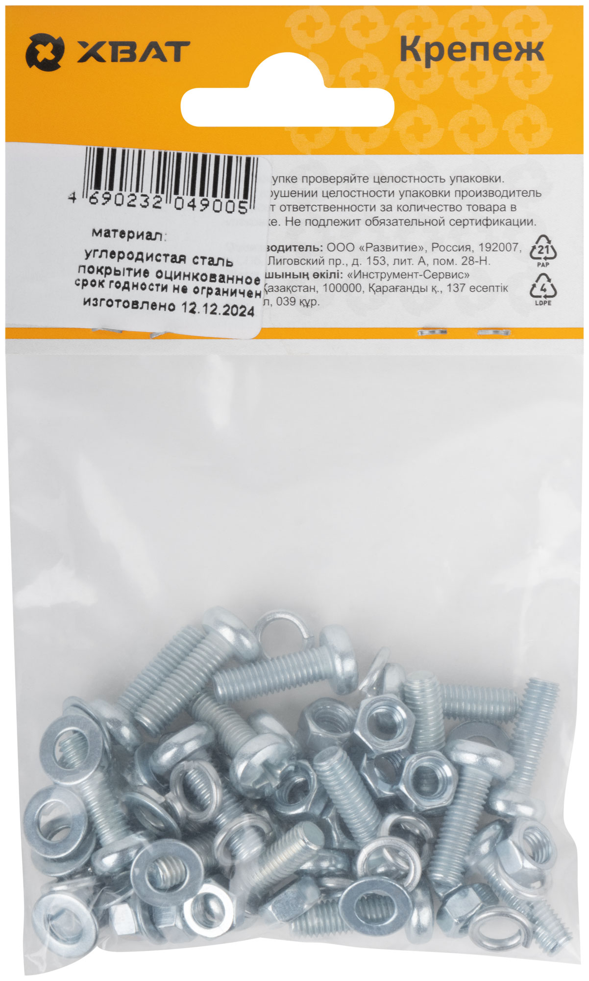 Купить Комплект: Винт DIN7985 5х16, с гайкой М5 DIN934, шайбой М 5 DIN125, шайбой М 5 DIN127 (фасовка 1810 по доступной цене в Москве