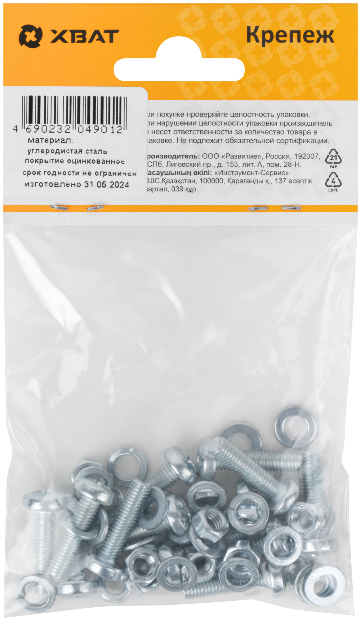 Купить Комплект: Винт DIN7985 5х20, с гайкой М5 DIN934, шайбой М 5 DIN125, шайбой М 5 DIN127 (фасовка 1310 по доступной цене в Москве