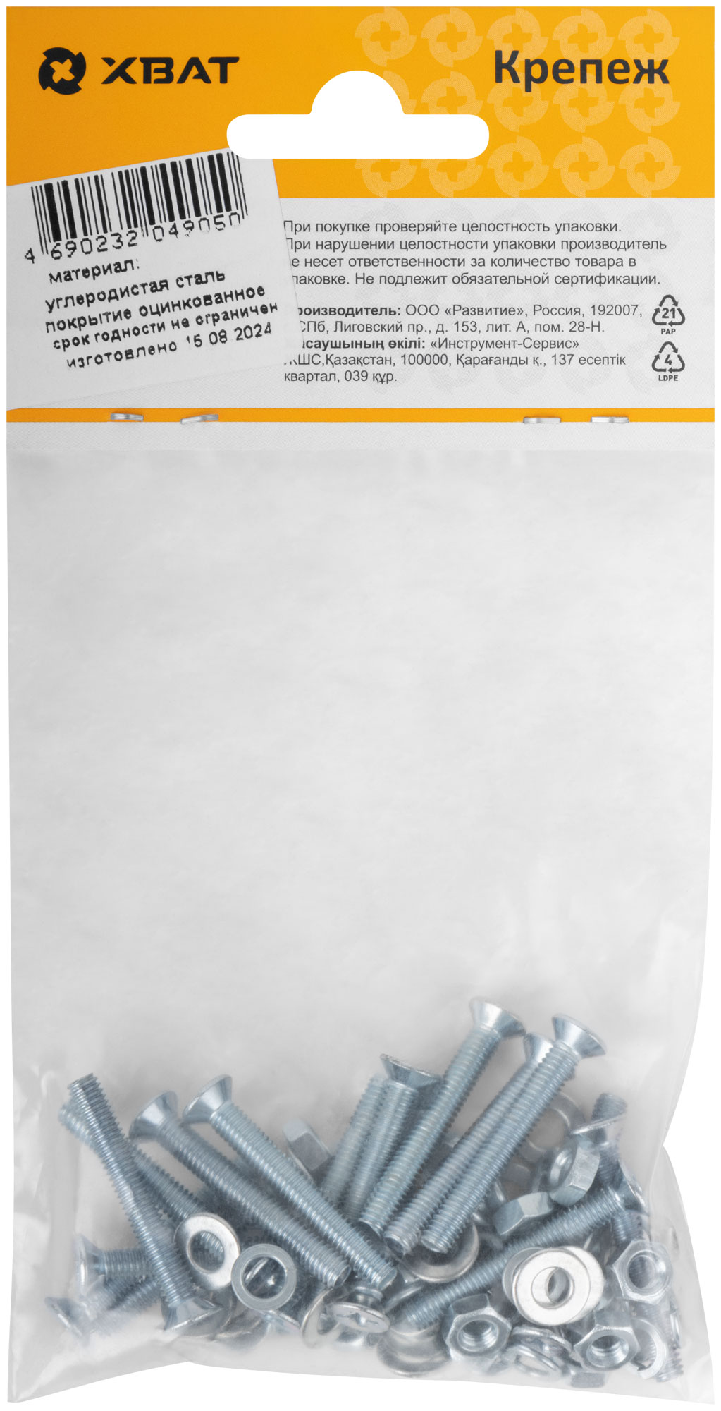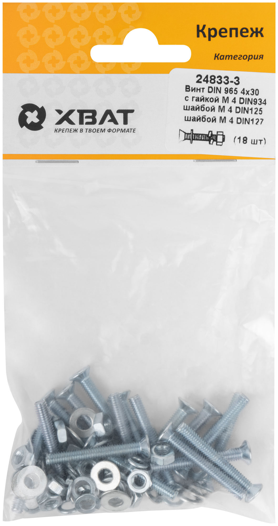 Купить Комплект: Винт DIN965 4х30, с гайкой М4 DIN934, шайбой М 4 DIN125, шайбой М 4 DIN127 (фасовка 1810 по доступной цене в Москве