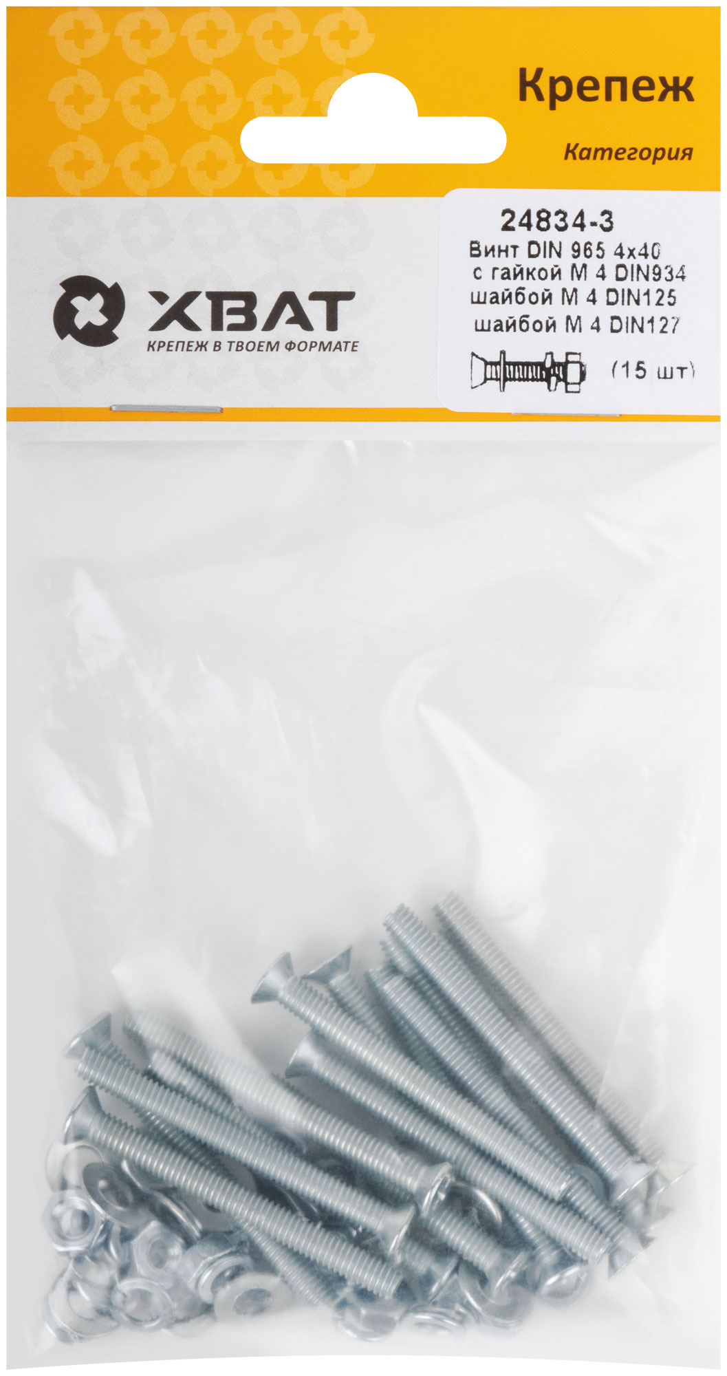Купить Комплект: Винт DIN965 4х40, с гайкой М4 DIN934, шайбой М 4 DIN125, шайбой М 4 DIN127 (фасовка 1510 по доступной цене в Москве