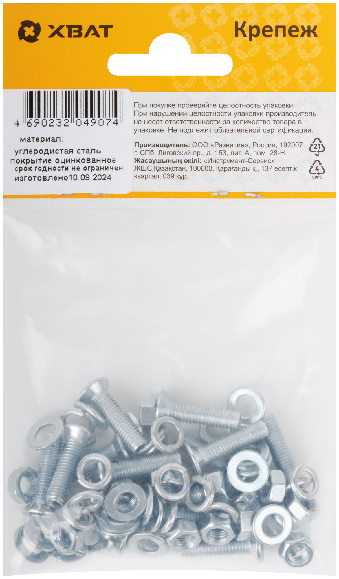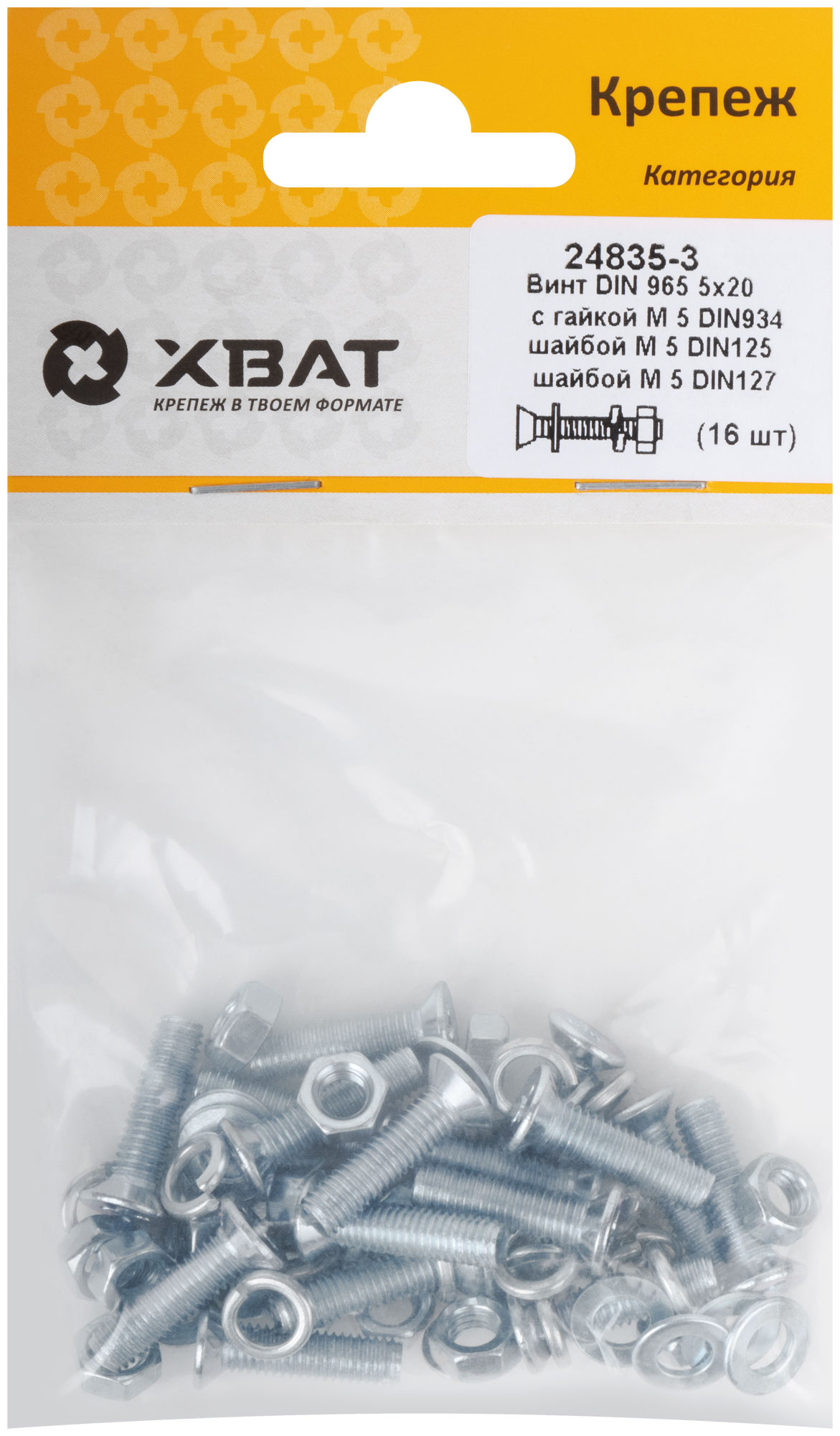 Купить Комплект: Винт DIN965 5х20, с гайкой М5 DIN934, шайбой М 5 DIN125, шайбой М 5 DIN127 (фасовка 1610. по доступной цене в Москве