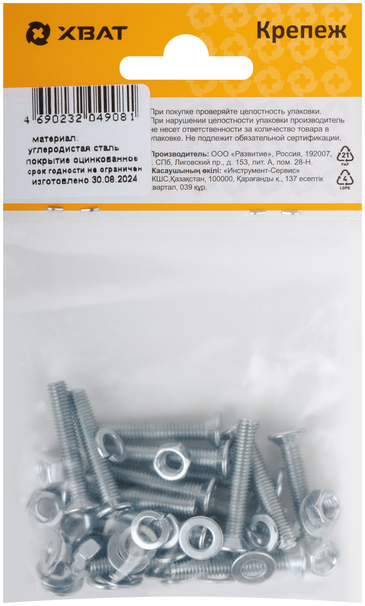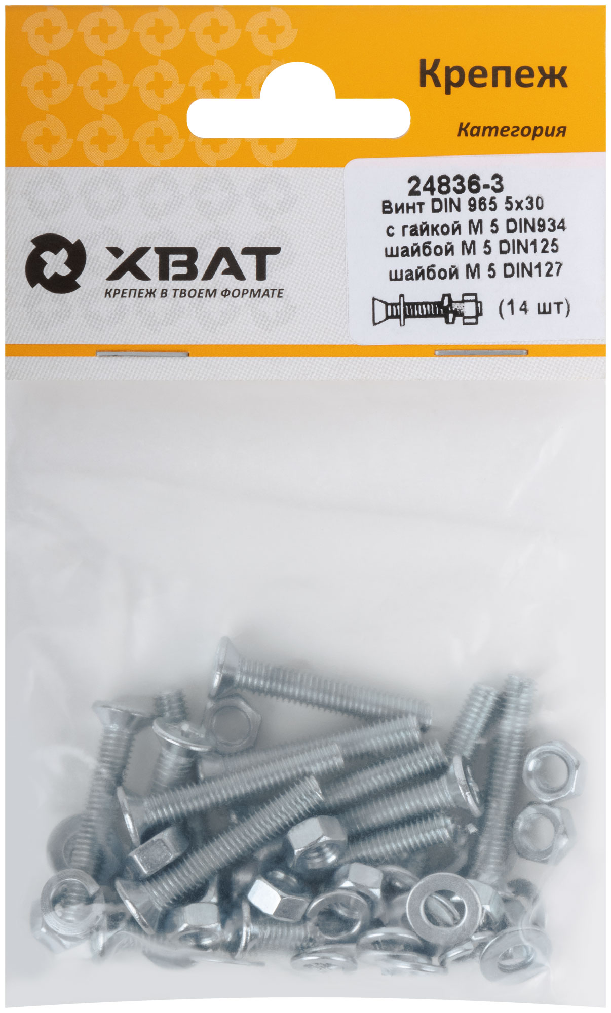 Купить Комплект: Винт DIN965 5х30, с гайкой М5 DIN934, шайбой М 5 DIN125, шайбой М 5 DIN127 (фасовка 1410 по доступной цене в Москве