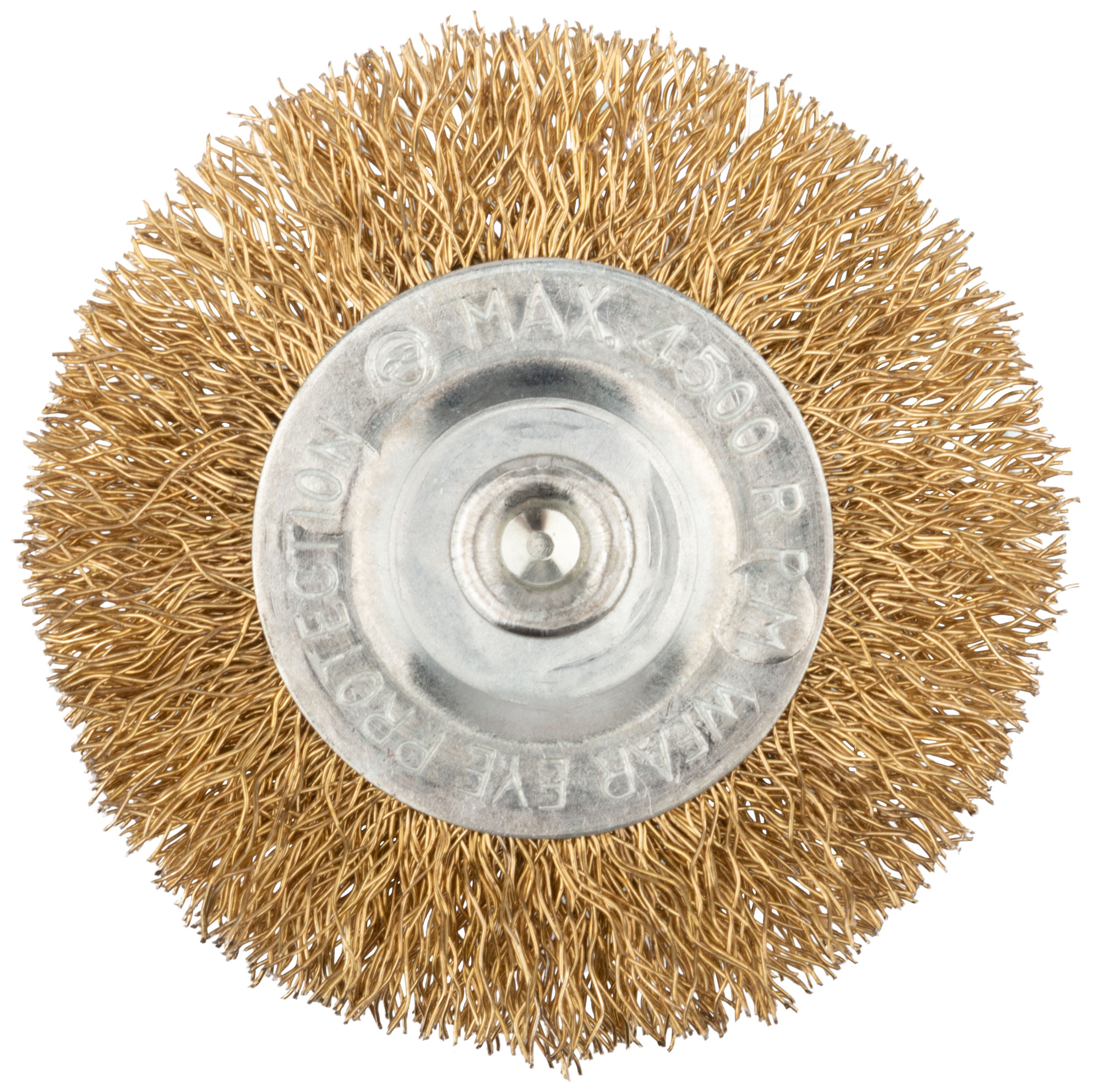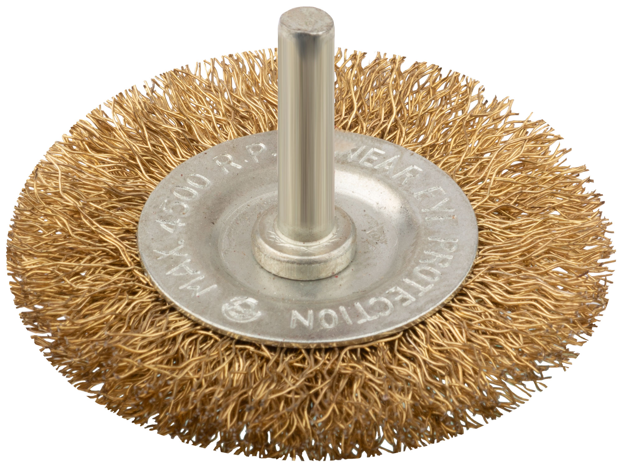 Купить Корщетка дисковая прямая, со шпилькой, стальная латунированная волнистая проволока 63 мм по доступной цене в Москве