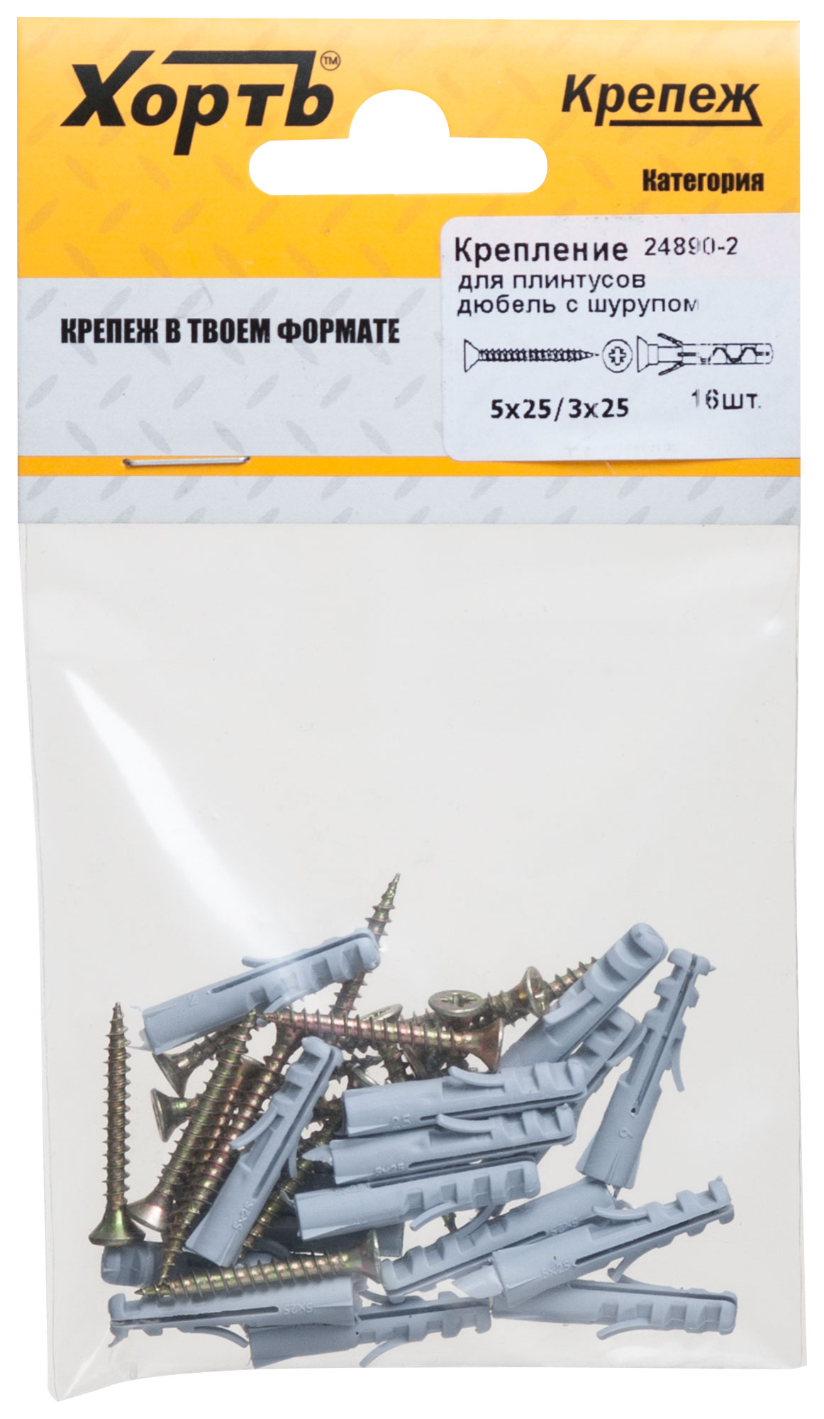 Купить Крепление для плинтусов.Комплект: дюбель с шурупом 5х25/3х25 (фасовка 16 10.) по доступной цене в Москве
