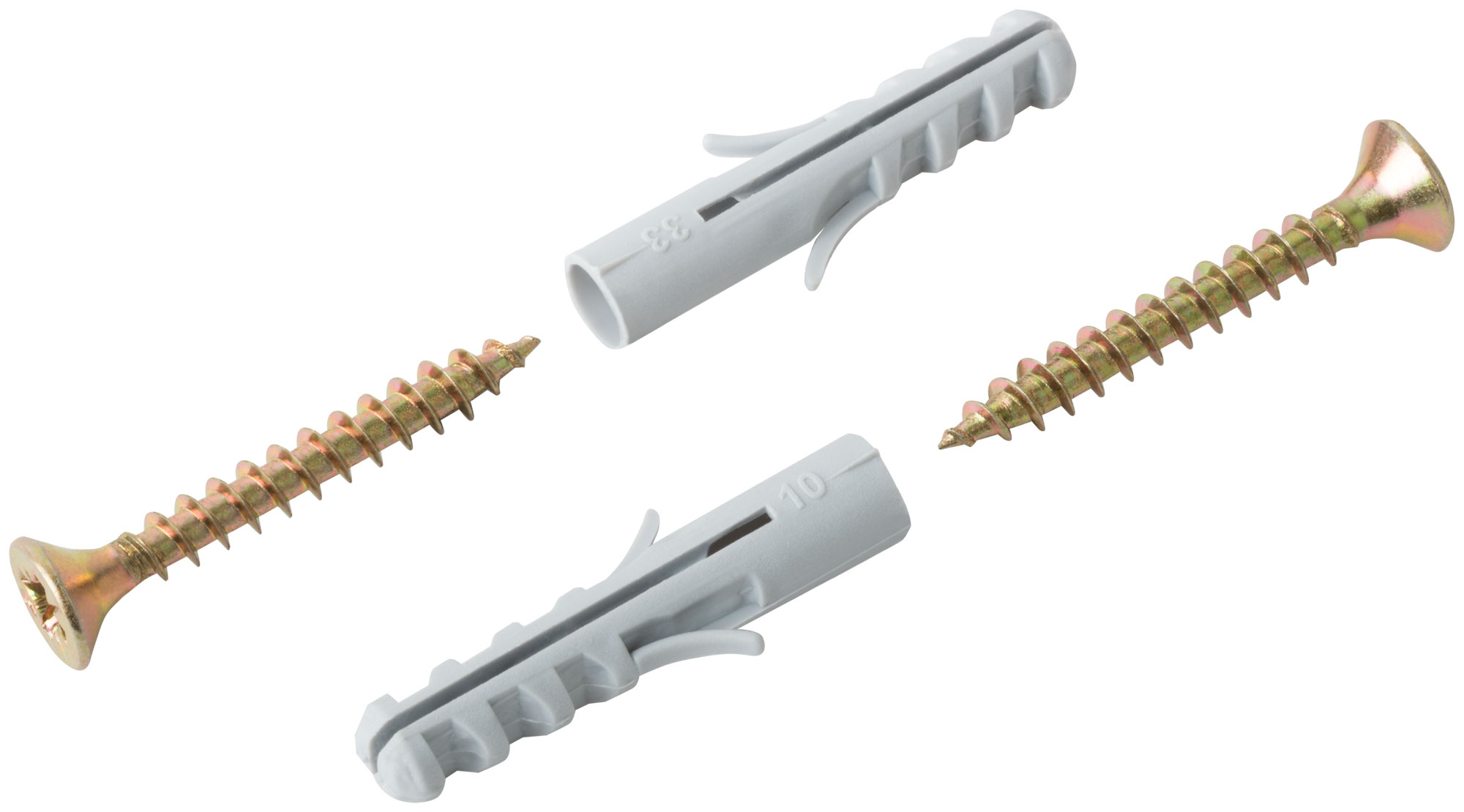 Дюбель изготовлен из полипропилена, шуруп - из стали. Используется для крепления плинтусов и других конструкций.