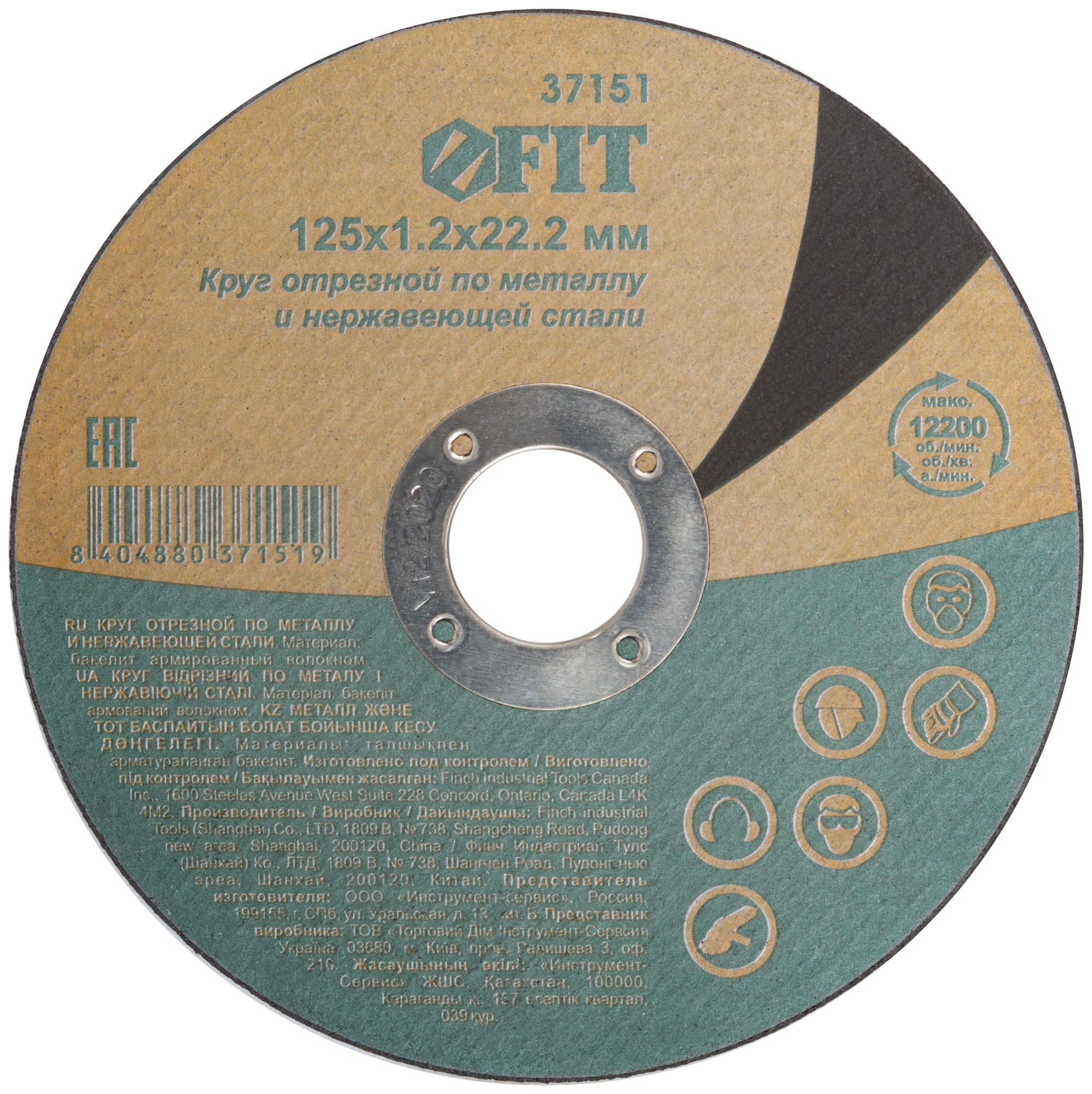Купить Круг отрезной по нержавеющей стали, посадочный диаметр 22,2 мм, 125x1,2 мм по доступной цене в Москве
