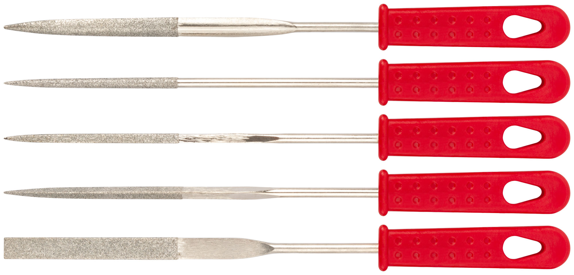 Алмазные. Материал: инструментальная сталь, покрытая алмазным напылением. Плоский, квадратный, трехгранный, круглый, полукруглый. Пластиковая ручка. Упаковка: блистер.