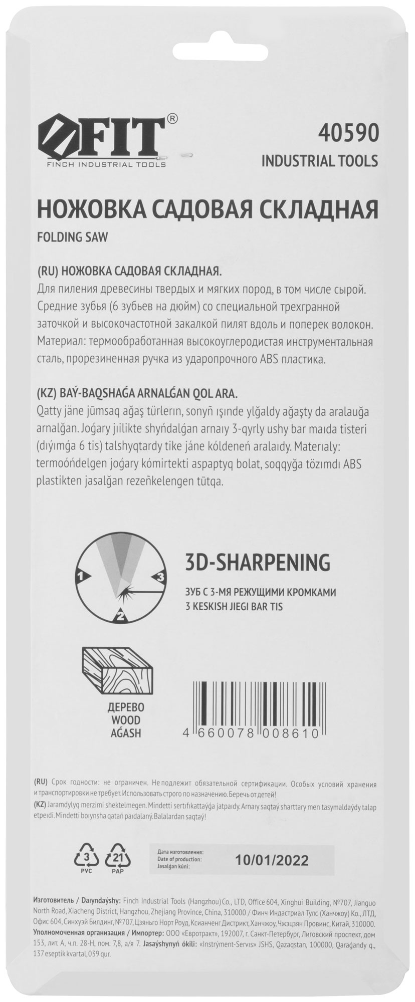 Средний зуб (6BTPI) со специальной трехгранной заточкой и высокочастотной закалкой пилит вдоль и поперек волокон, обеспечивая чистоту реза и высокую точность. Материал: полотно из терообработанной высокоуглеродистой инструментальной стали; прорезиненная эргономичная ручка из ABS пластика. Упаковка: блистер.
