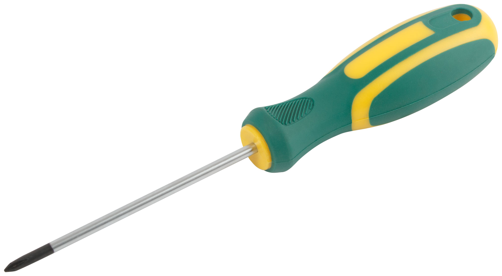 Для работы с крепежными элементами. Магнитный наконечник. Материал: хром-ванадиевая сталь, пластиковая прорезиненная ручка. Упаковка: пластиковый подвес.