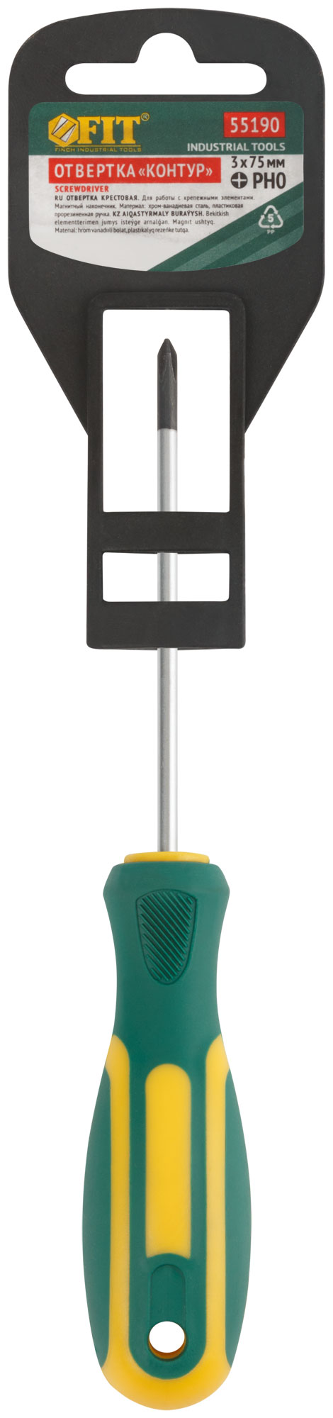 Купить Отвертка "Контур", CrV сталь, прорезиненная ручка 3х75 мм РН0 по доступной цене в Москве