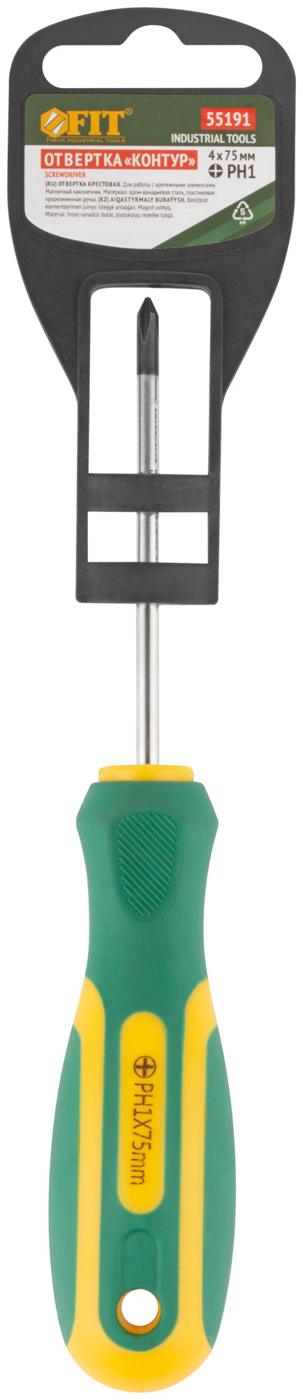 Купить Отвертка "Контур", CrV сталь, прорезиненная ручка 4х75 мм РН1 по доступной цене в Москве