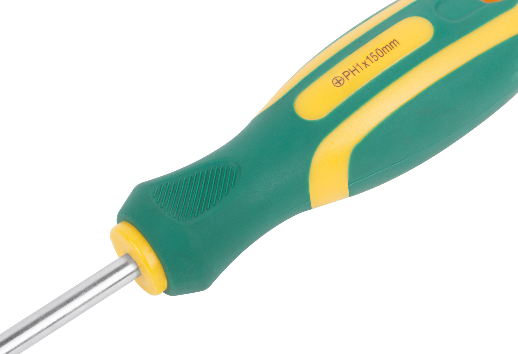Для работы с крепежными элементами. Магнитный наконечник. Материал: хром-ванадиевая сталь, пластиковая прорезиненная ручка. Упаковка: пластиковый подвес.